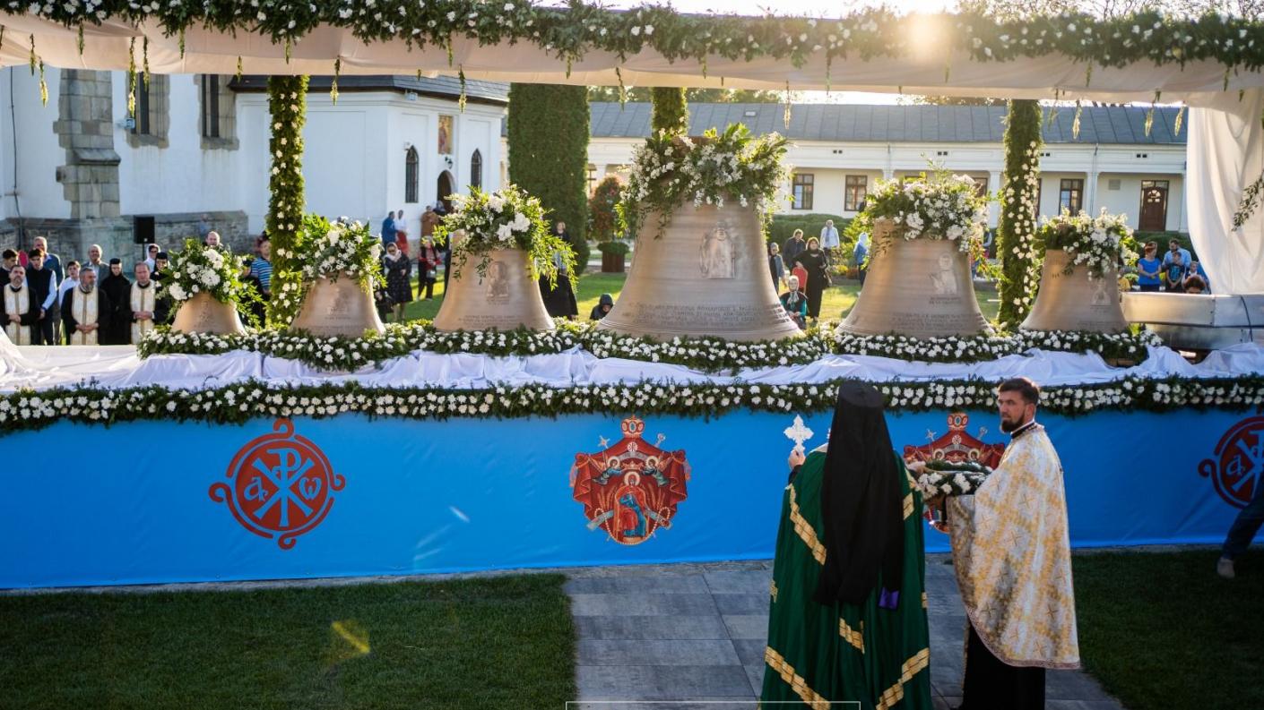 Așezate pe un suport special împodobit cu flori, în proximitatea Altarului de vară, cele șase clopote noi au fost sfințite de Înaltpreasfințitul Părinte Ioachim și încredințate astfel cultului divin public, urmând a deservi nevoilor liturgice specifice săvârșirii zilnice a celor șapte laude în sfântul chivot mușatin închinat Sfintei Cuvioase Parascheva.