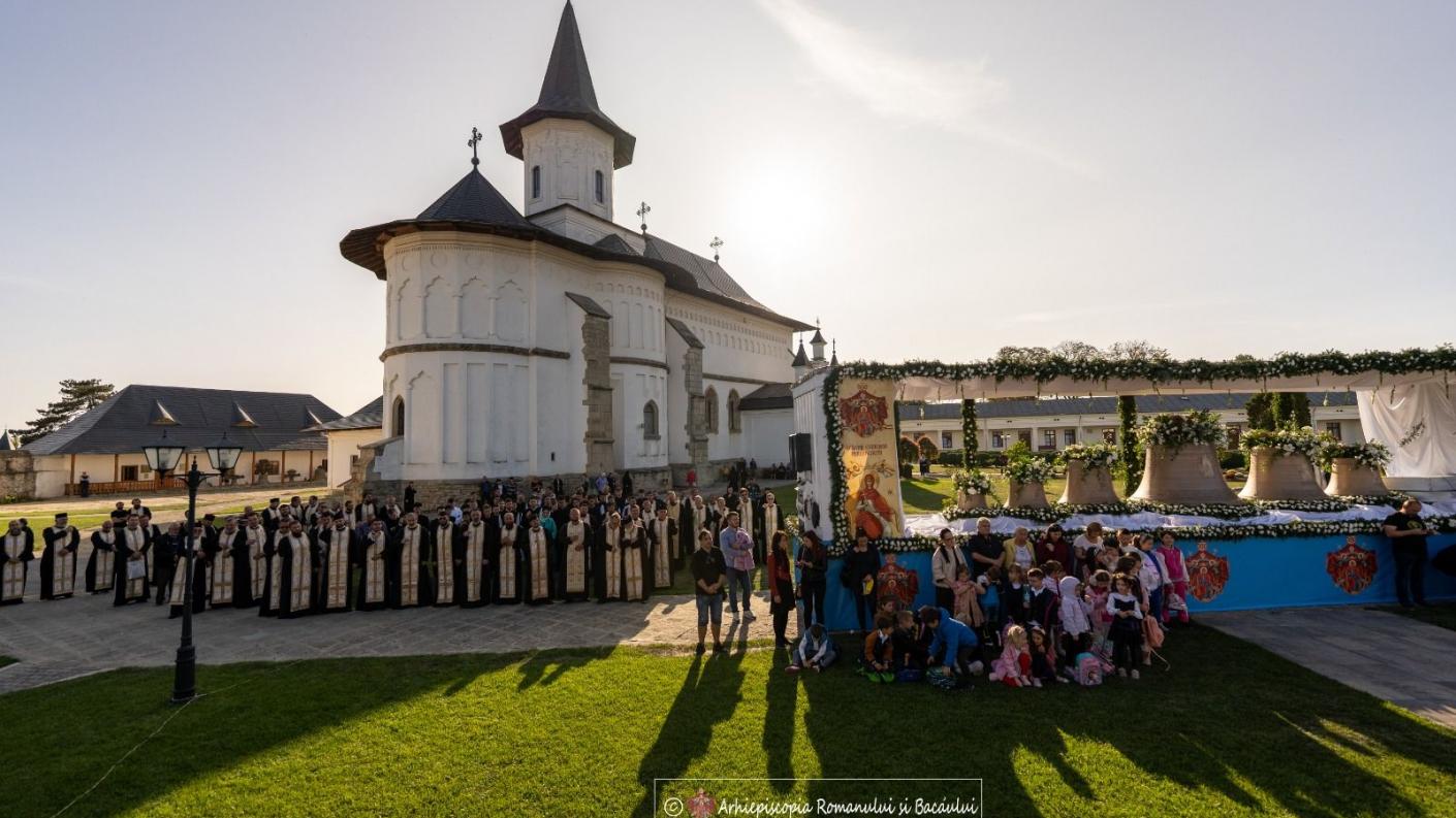 Adresându-se preoților și pelerinilor prezenți la slujba de sfințire a noilor clopote, Înaltpreasfințitul Părinte Ioachim a spus că aceasta reprezintă un eveniment istoric pentru Eparhia Romanului și Bacăului care se așază în continuitatea faptelor împlinite de ierarhii predecesori în scaunul vlădicesc de la Roman, cele șase clopote urmând a fi așezate în Turnul clopotniță ctitorit de Episcopul Melchisedec, un reper simbolic pe harta monumentelor romașcane: