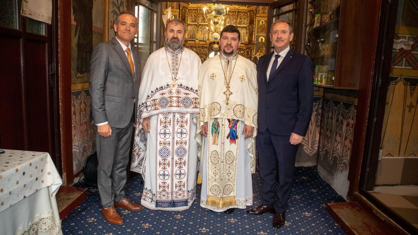 Ierarhul a fost întâmpinat în fața lăcașului de cult de părintele Ioan Bârgăoanu, protoiereul locului, de domnul Cristian Aurelian Ciubotaru, primarul orașului Târgu Ocna, de domnul Ioan Bujor, primarul comunei Dofteana și membru al Adunării eparhiale, de domnul Vasile Budacă, consilier al Consliului Județean Bacău, de soborul de preoți și diaconi, de membrii Coralei „Armonia” din Constanța care, coordonați de părintele arhidiacon Ion Iulian Dumitru, au oferit răspunsurile la Dumnezeiasca Liturghie, precum și de mulțime mare de credincioși ce au luat parte la eveniment.