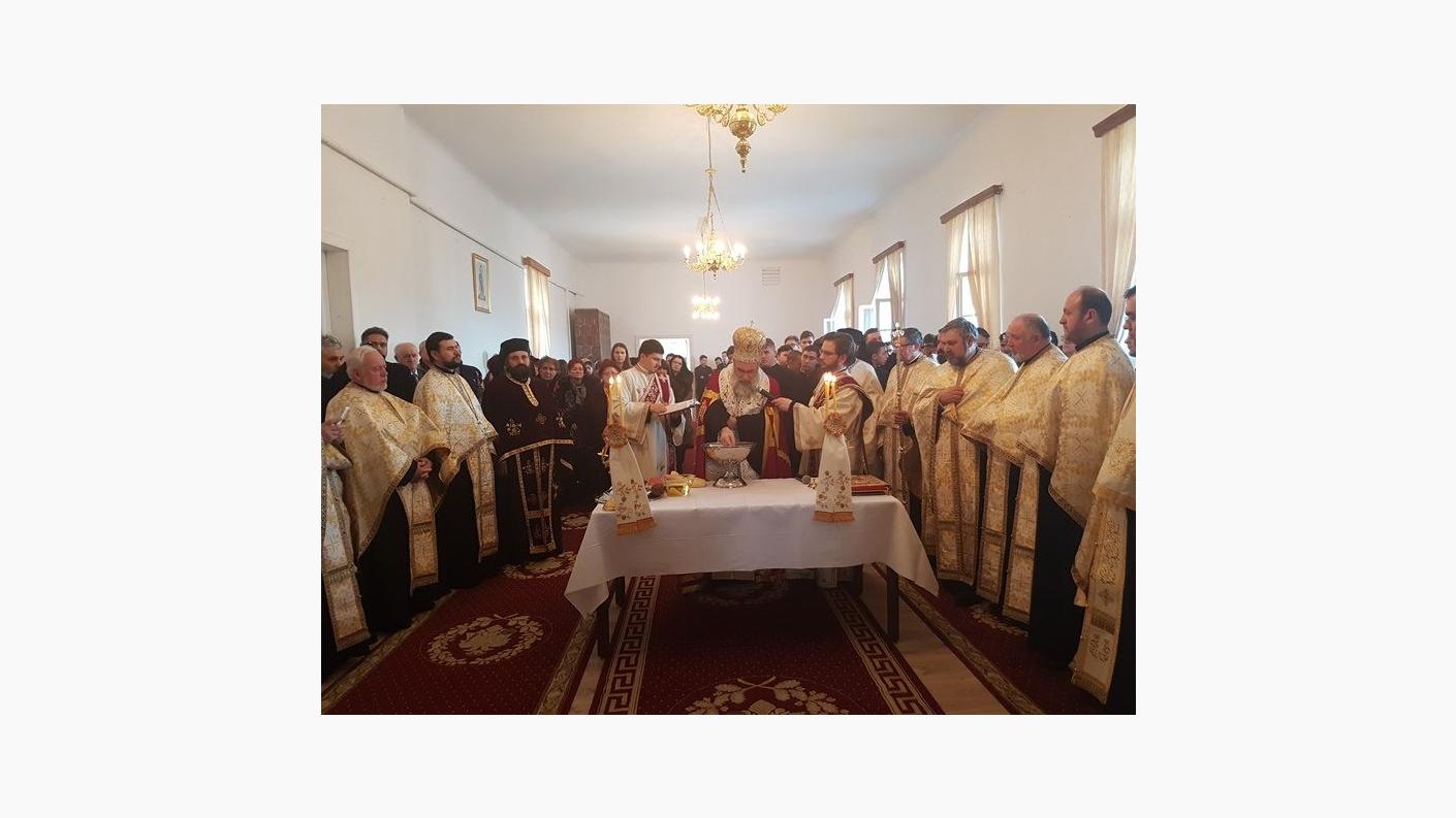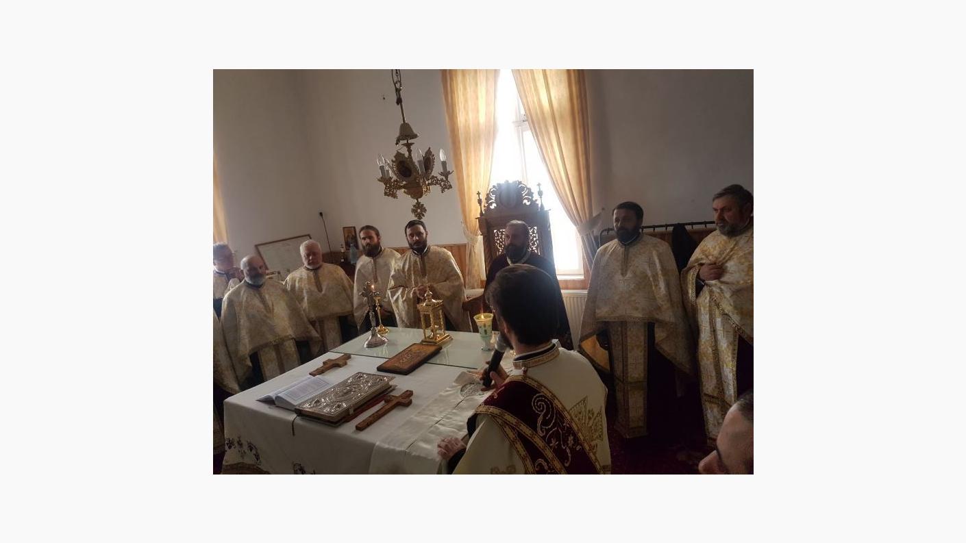 Apoi, toți cei prezenți s-au deplasat din paraclis în sala de lectură unde Înaltpreasfințitul Părinte Ioachim a rostit rugăciunile de binecuvântare a untdelemnului și a sfințit această sală ce va purta numele preotului Dimitrie Matcaș.