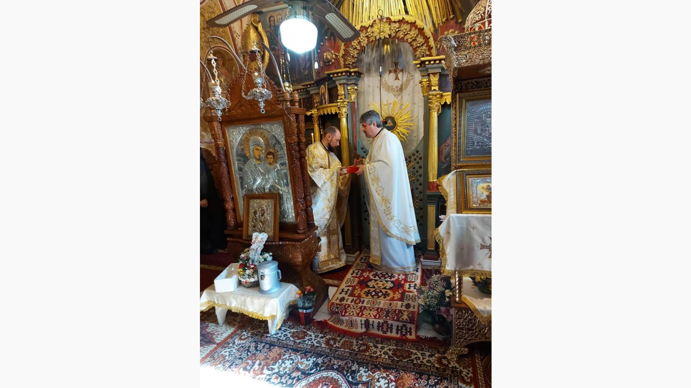 În mod simbolic, părintele protoiereu i-a înmânat noului preot paroh, Molitfelnicul, „cartea folosită de preot în lucrarea sa pastorală pentru sfințirea păstoriților”, și Sfânta Cruce, „steagul de luptă care ne ajută și biruiește toate și simbolul iubirii milostive”, cu îndemnul de a rămâne același om al rugăciunii și al jertfei și să continue lucrarea frumoasă imprimată de părintele Vasile în această comunitate. Totodată a transmis și binecuvântarea și urările de bine, sănătate și post binecuvântat din partea Arhipăstorului nostru.
