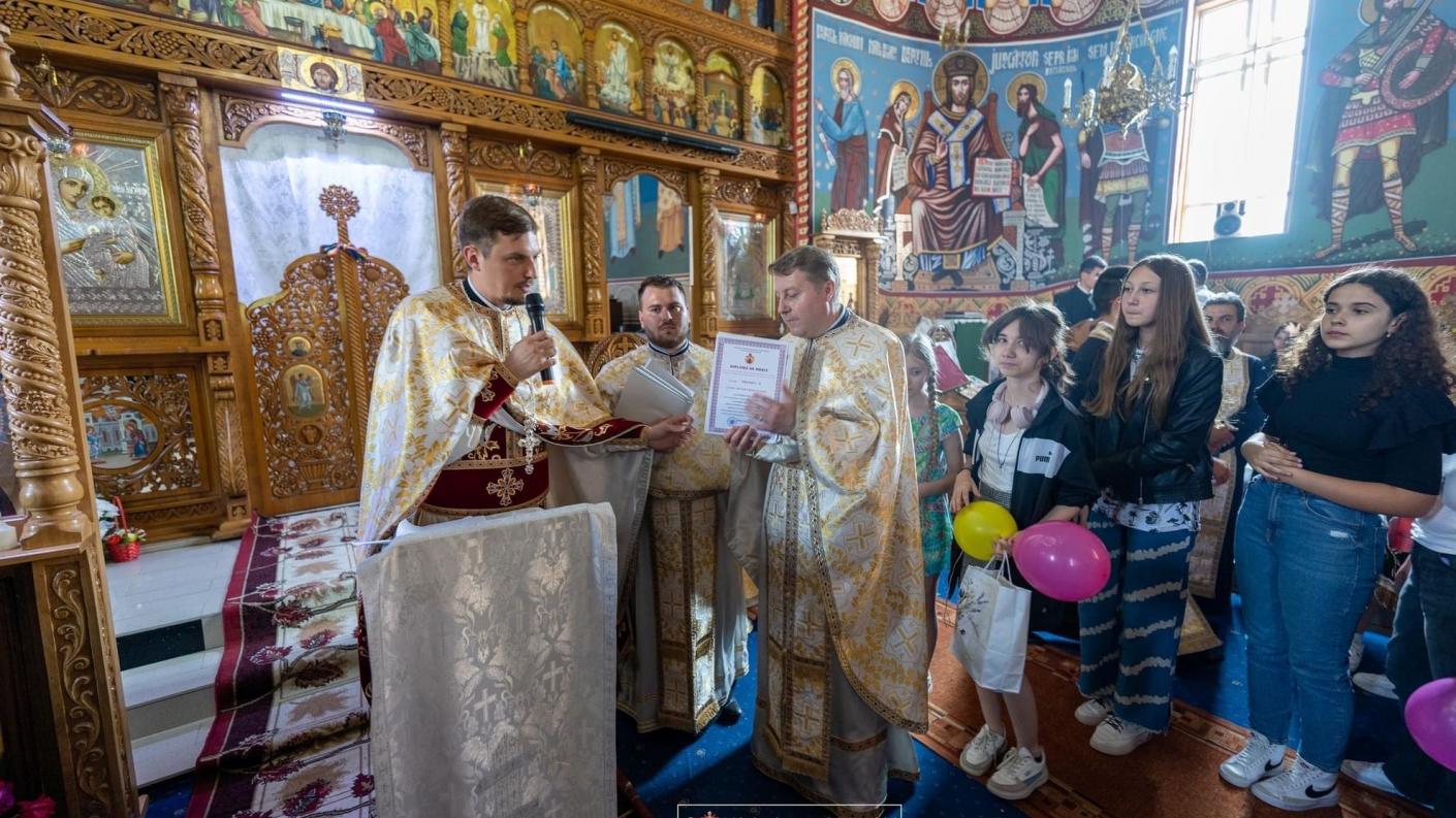 După cuvântul de învățătură, a avut loc premierea copiilor grupurilor catehetice din cadrul parohiilor participante la Concursul Național Catehetic „Tinerii şi vârstnicii să laude numele Domnului”, organizat de Sectorul teologic-educațional al Patriarhiei Române între manifestările culturale şi educaţionale, programate cu prilejul anului omagial şi comemorativ, dintre care amintim: