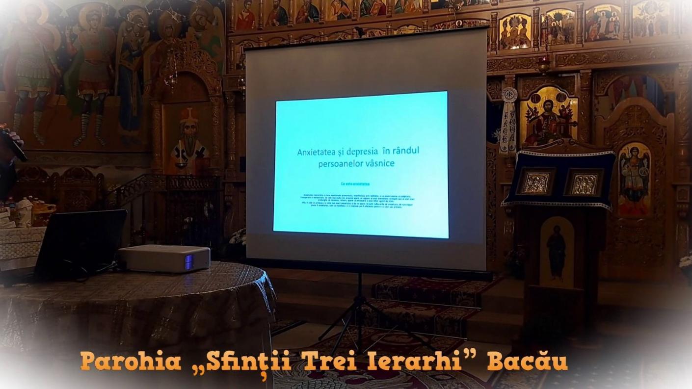 Vineri, 22 septembrie 2023, membrii Centrului de socializare și petrecere a timpului liber pentru persoane vârstnice „Sf. Ioachim şi Ana” din cadrul Parohiei „Sf. Trei Ierarhi” Bacău au fost invitați la o nouă activitate ce face parte din proiectul Protopopiatului Bacău, dedicat „Anului Omagial al pastorației persoanelor vârstnice”. După săvârşirea Tainei Sf. Maslu, părintele paroh Aurel Cîrlan, în calitatea sa de psihoterapeut, a propus spre meditaţie tema de actualitate „Anxietatea şi depresia în rândul persoanelor vârsnice”, fiind abordată atât din punct de vedere psihologic, cât şi din punct de vedere duhovnicesc.