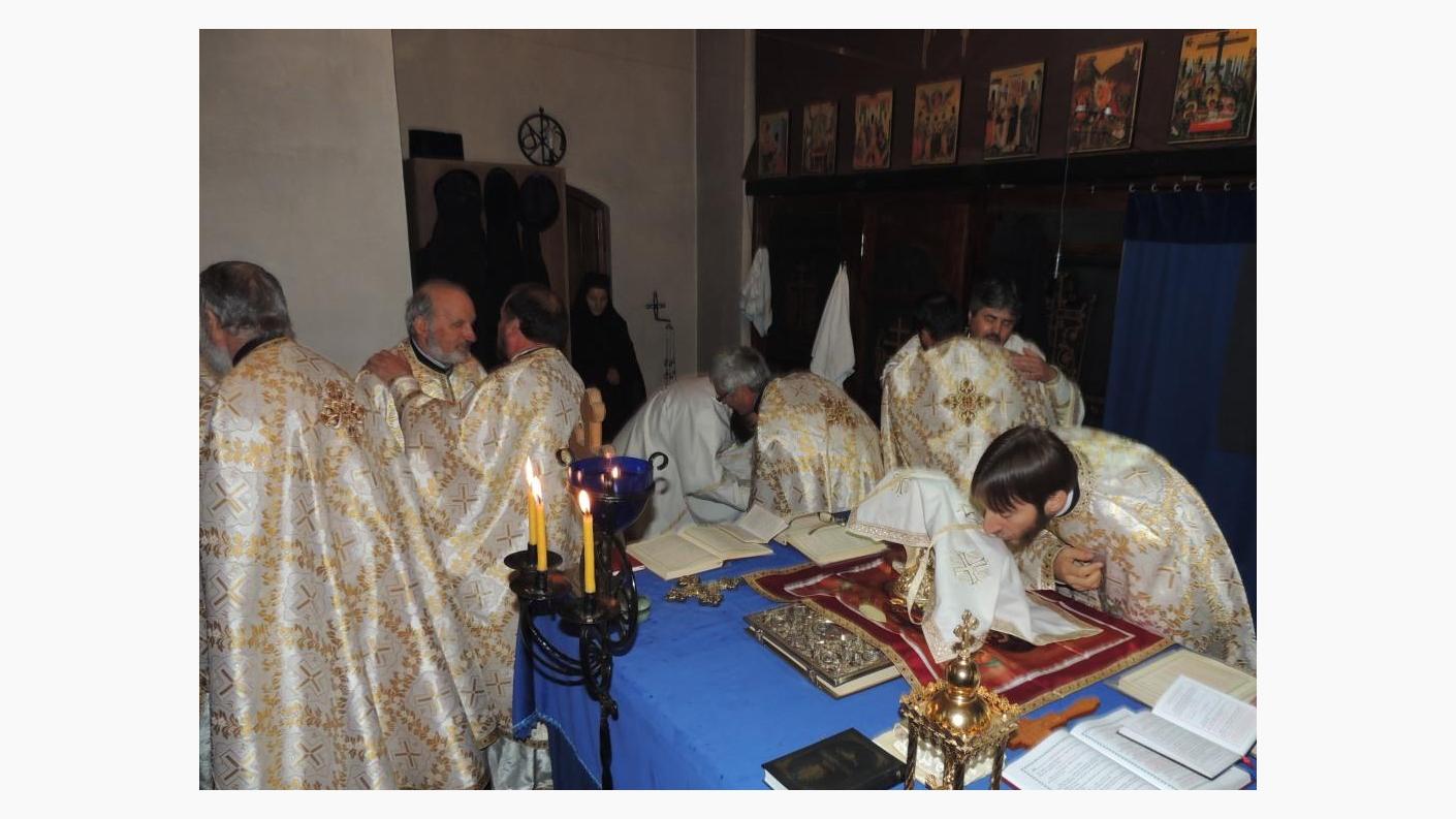 Cu această ocazie a fost săvârşită Sfânta Liturghie de către preoţii membri ai Cercului Pastoral Valea Muntelui sub protia părintelui protoiereu Costel Mareş, răspunsurile la strană fiind date de corul maicilor mănăstirii Diaconești.