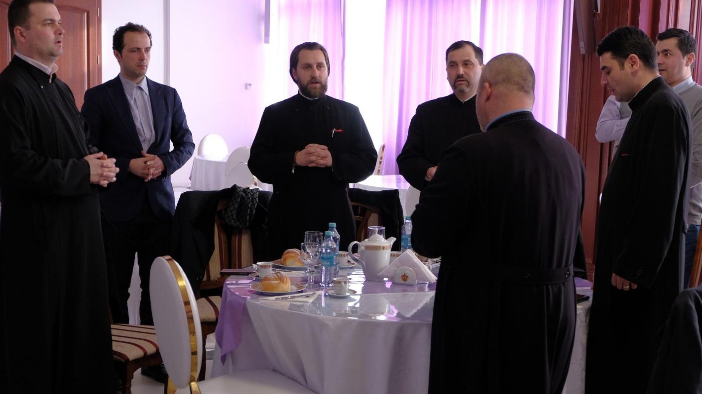 Ședința de lucru, desfășurată în Sala „Sfântul Ierarh Dosoftei”, a fost deschisă de părintele protopop Dragoș Munteanu care a felicitat pe profesorii de Religie care au desfășurat activități deosebite în primul semestru al anului școlar 2019-2020, amintind o serie de proiecte derulate de aceștia în parteneriat cu Protopopiatul Roman, în perioada sărbătorilor de iarnă, apoi, părintele Andrei Adrian de la Parohia Poienița, Protopopiatul Roman, a dat citire referatului „Importanța cooperării dintre preot și profesorul de Religie” în care a oferit colegilor săi modalități practice de pastorație a tinerilor și soluții comune didatice și pastorale pe care preotul și profesorul de Religie le pot aplica în vederea formării cultural-spirituale a elevilor. Apoi, cadrele didactice prezente, în luările de cuvânt, au prezentat proiecte și activități pe care le-au desfășurat în anul precedent, în parteneriat cu Biserica, cu aplicare la tema pastorației tinerilor, propunând totodată, pentru anul în curs, concursuri și activități menite să încurajeze tinerii și să împiedice abandonul școlar.