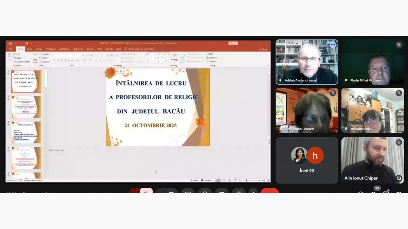 Consfătuirea anuală a profesorilor pentru disciplina Religie din județul Bacău, activitate metodică desfășurată cu binecuvântarea Înaltpreasfințitului Părinte Ioachim, Arhiepiscopul Romanului și Bacăului, s-a desfășurat anul acesta online, vineri, 24 octombrie 2025.