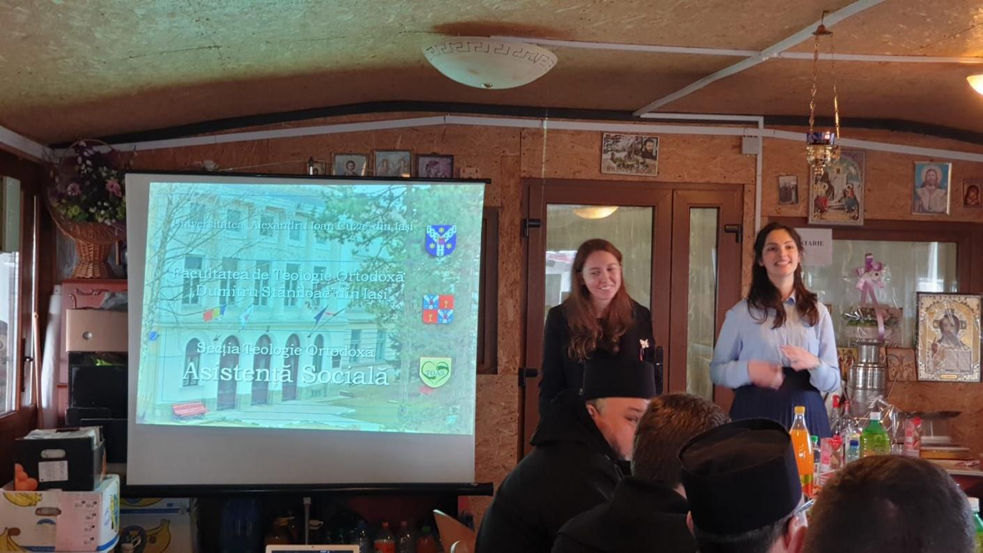 În încheiere, două studente ale secției de asistență socială din cadrul Facultății de Teologie Ortodoxă „Dumitru Stăniloae” din Iași au prezentat oferta educațională pentru tinerii ce vor să se înscrie la acest departament, dar mai ales avantajele colaborării ONG-urilor cu absolvenții acestei secții fie prin voluntariat, fie prin angajare.