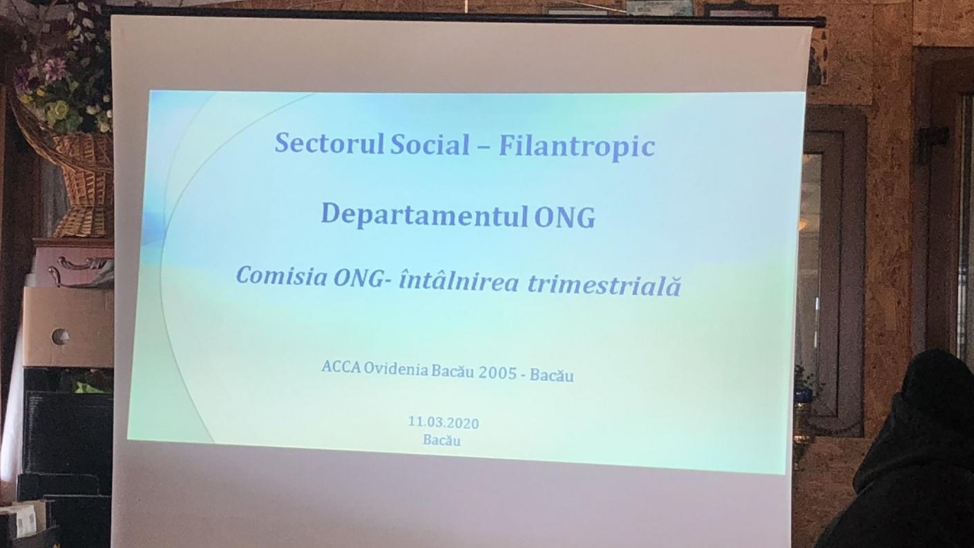 În data de 11 martie 2020 a avut loc, cu binecuvântarea Înaltpreasfințitului Părinte Arhiepiscop Ioachim, întâlnirea trimestrială a Comisiei ONG ce funcționează în cadrul Arhiepiscopiei Romanului și Bacăului. Acest eveniment a avut loc la Asociația Creștină de Caritate și Ajutor „Ovidenia” din Bacău, debutând cu săvârșirea Sfintei Liturghii a Darurilor mai înainte sfințite, de către preoții participanți, alături de ceilalți membri din ONG-urile eparhiei.