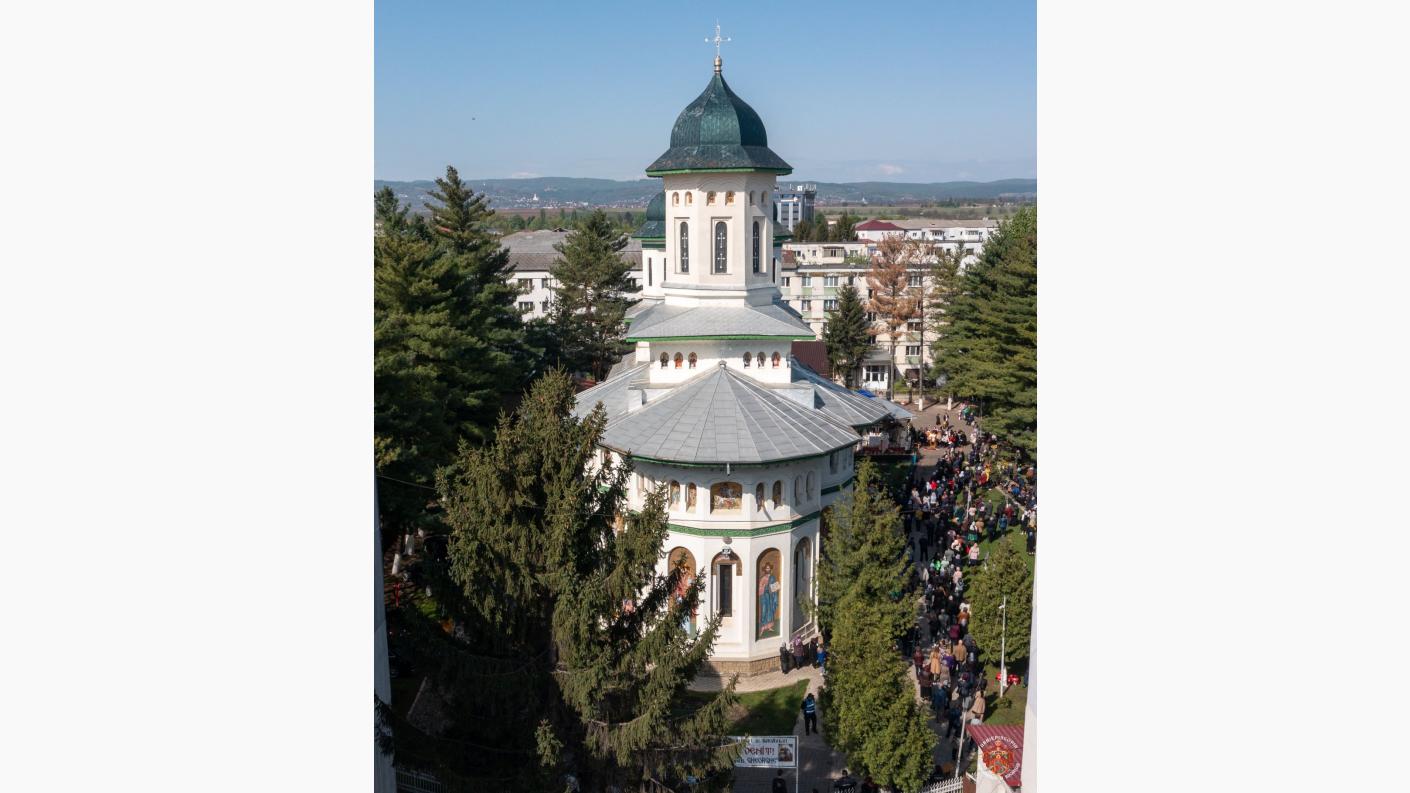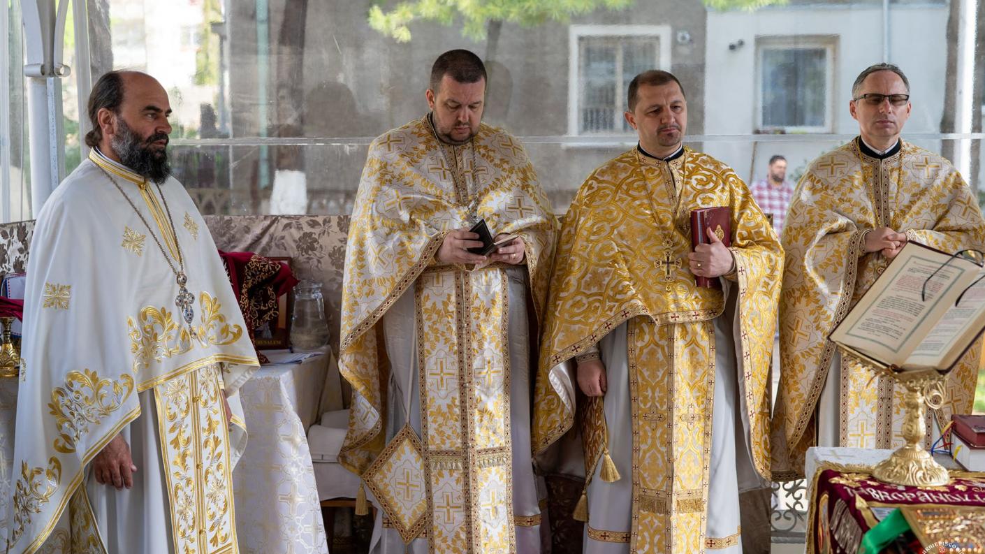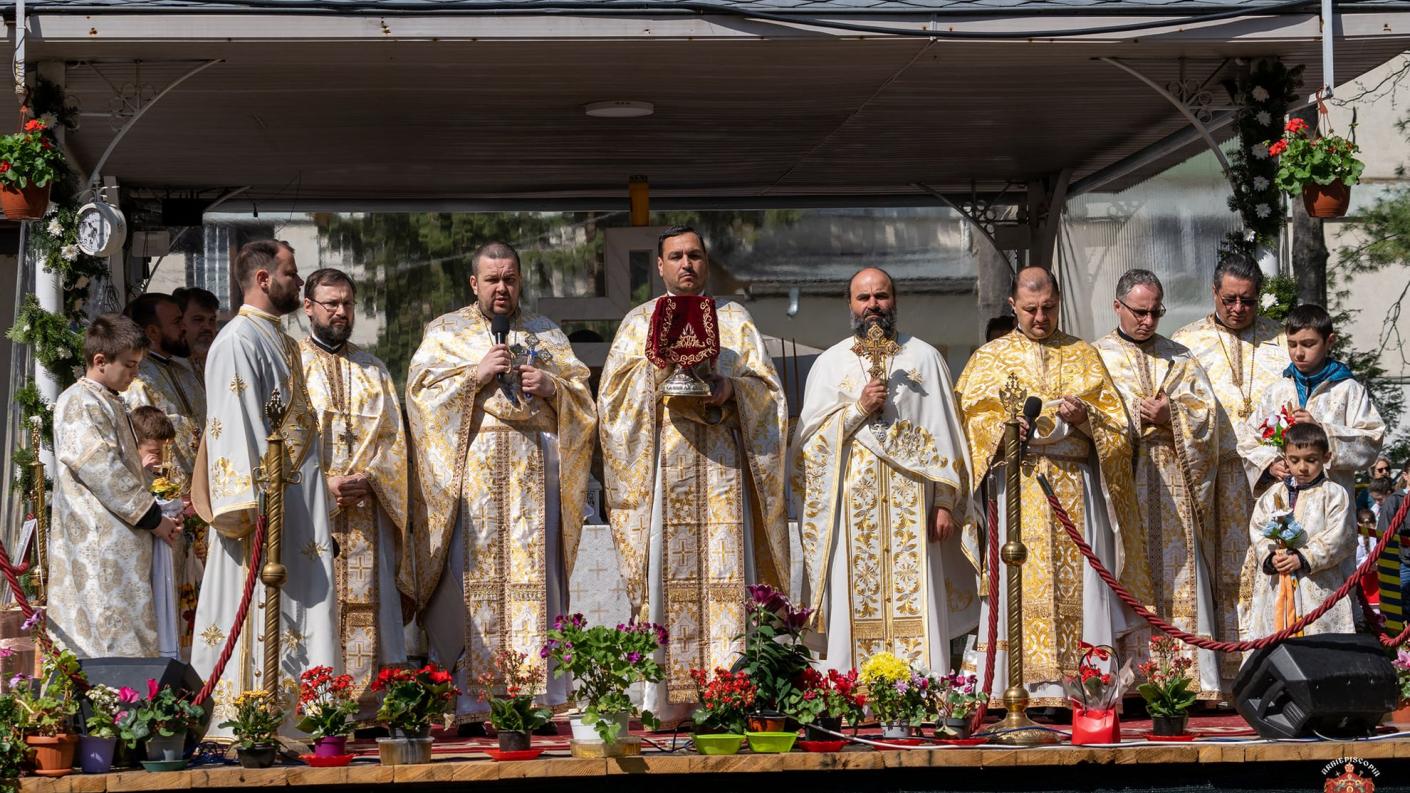 La Sfânta Liturghie arhierească oficiată la Biserica „Sf. Gheorghe” din Roman, IPS Părinte Arhiepiscop Ioachim a fost înconjurat de un sobor de preoți alcătuit din consilieri de la Centrul eparhial, protoierii de Roman și Bacău, preoți și diaconi romașcani și băcăuani. Răspunsurile la strană au fost date de corul "Anastasis" al parohiei „Sf. Gheorghe”, dirijat de prof. Anamaria Zodian.