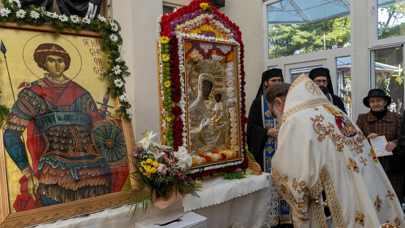 Credincioșii prezenți la Sfânta Liturghie arhierească de astăzi s-au bucurat și de prezența icoanei făcătoare de minuni a Maicii Domnului de la Mănăstirea Giurgeni (Neamț), care a poposit, ca în fiecare an, pentru câteva zile la Biserica băcăuană „Sfântul Gheorghe”. Icoana cu trei ochi și două guri adusă zilele acestea la Biserica „Sf. Gheorghe” este îmbrăcată în argint și a fost dăruită Mănăstirii Giurgeni la data de 6 august 1831. Ea a fost pictată în anii 1740 – 1750 de către zugravul Nectarie. Astăzi icoana este recunoscută pentru miracolele pe care le înfăptuiește. Cel de-al treilea ochi și cea de-a doua gură au apărut fără intervenție omenească, prin voie dumnezeiască, pe icoana deja pictată, ceea ce o face unică în lume. Minunile trăite de credincioși au făcut înconjurul țării și oameni din toate regiunile merg acum la Giurgeni să ceară ajutorul Maicii Domnului, închinându-se ei, în fața acestei icoane.
