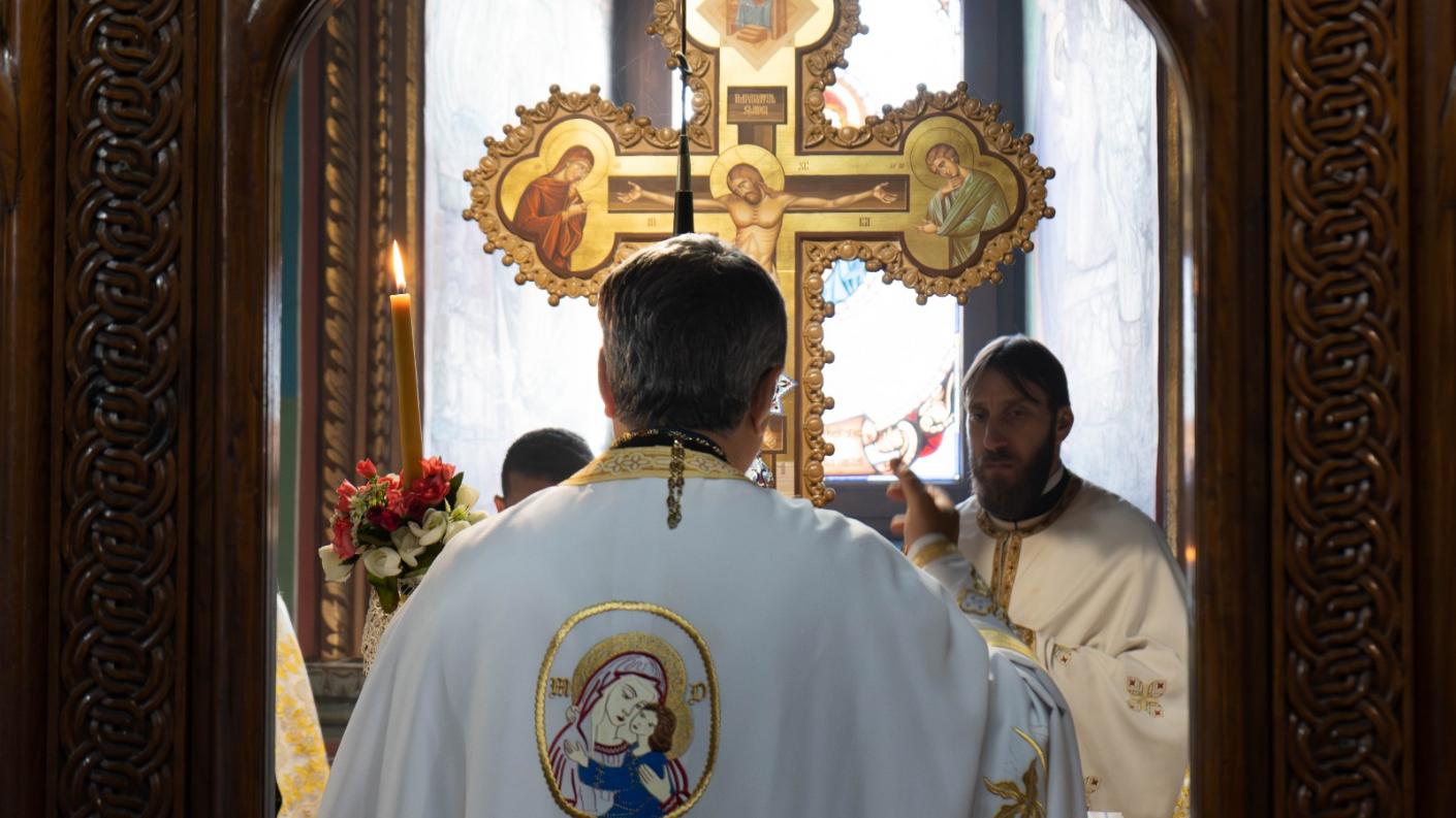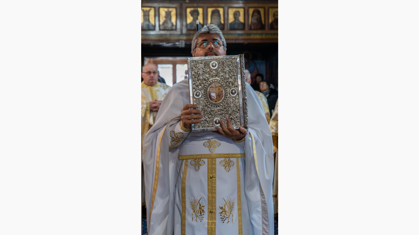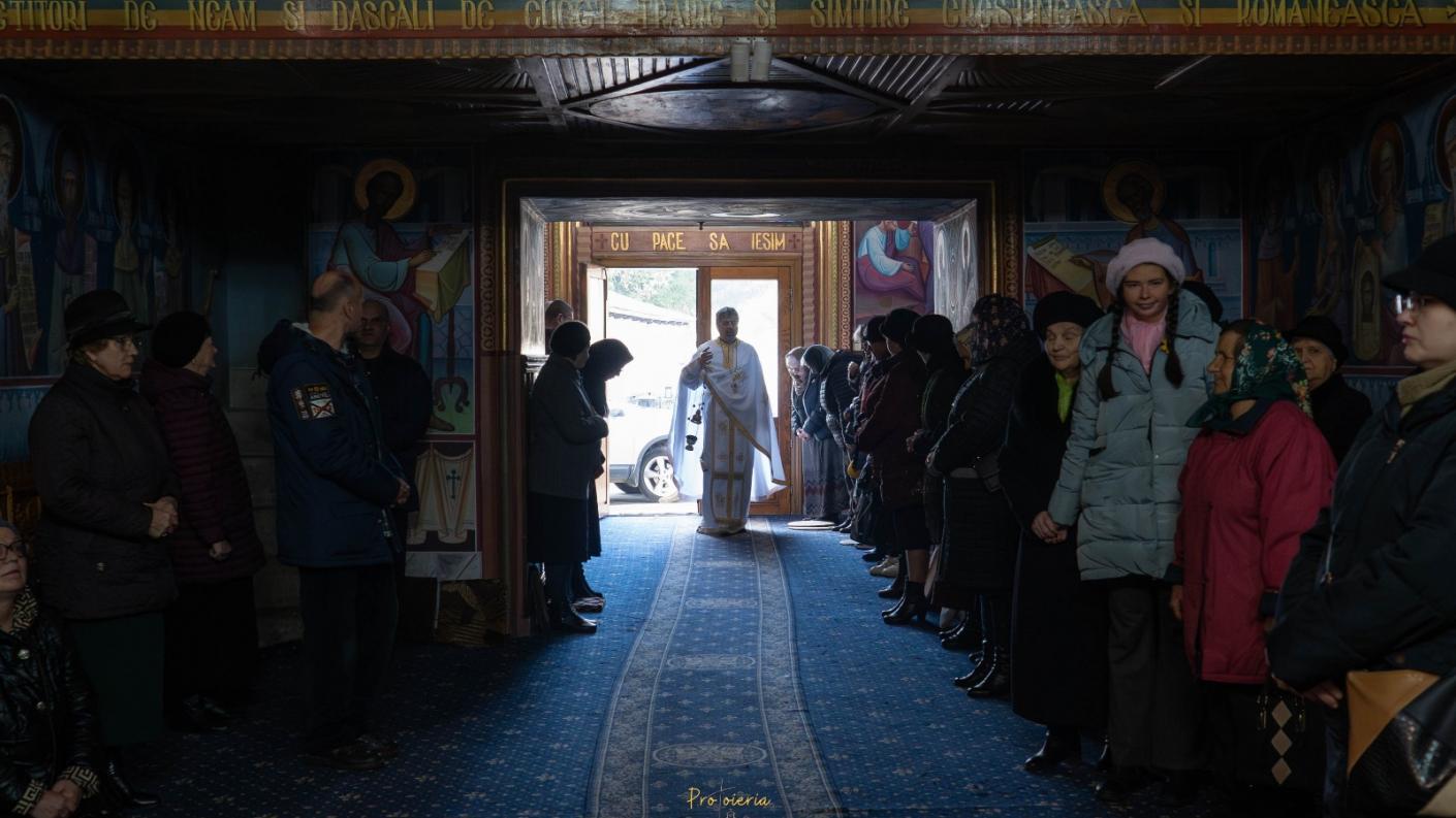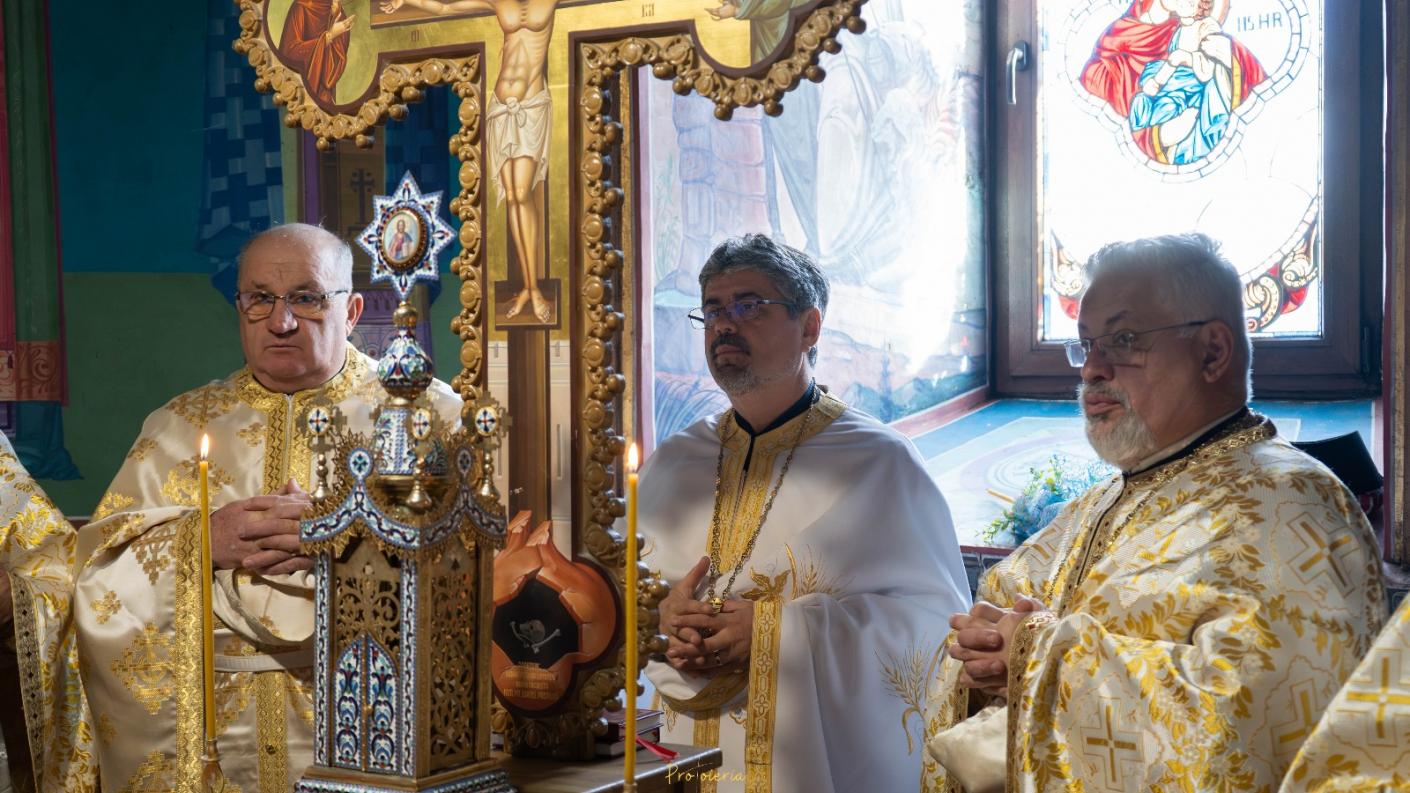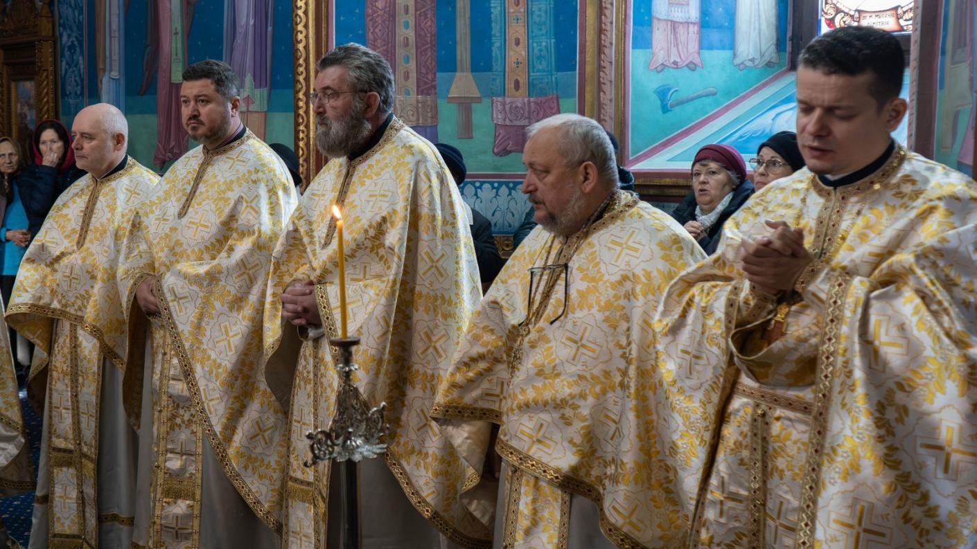 După slujba Utreniei s-a săvârșit Sfânta și Dumnezeiasca Liturghie, sub protia părintelui protopop Costel Mareș.