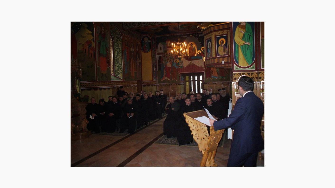 Referatul cu tema "Lucrarea tridimensională a lui Hristos în Teologie părintelui Dumitru Stăniloae", a fost expus de drd. Eduard Cozma, cadru didactic la Liceul Teologic Ortodox "Melchisedec Ştefănescu" din Roman.