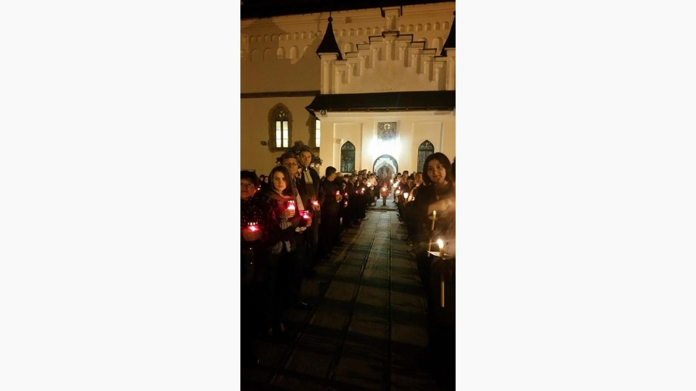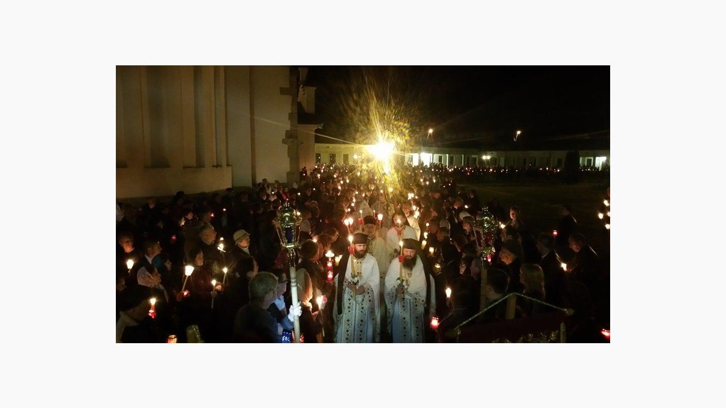 Mii de credincioși romașcani și pelerini au ales să petreacă noaptea Sfintelor Paști la Catedrala Arhiepiscopală ”Sf. Cuv. Parascheva” din Roman, acolo unde slujba Învierii a fost oficiată de Înaltpreasfințitul Ioachim, Arhiepiscopul Romanului și Bacăului, înconjurat de un sobor de preoţi şi diaconi. Conform obiceiului îndătinat, aproape de miezul nopții, a fost adusă Lumina Sfântă de la Ierusalim, care ulterior a fost împărțită de Înaltpreasfinția Sa tuturor celor prezenți în curtea locașului de cult mușatin. Anul acesta, Sfânta Lumina a fost adusă de la București de către o delegație a Eparhiei, condusă de părintele arhimandrit Serafim Huzdup, fiind apoi oferită tuturor preoților din cuprinsul Arhiepiscopiei Romanului și Bacăului.