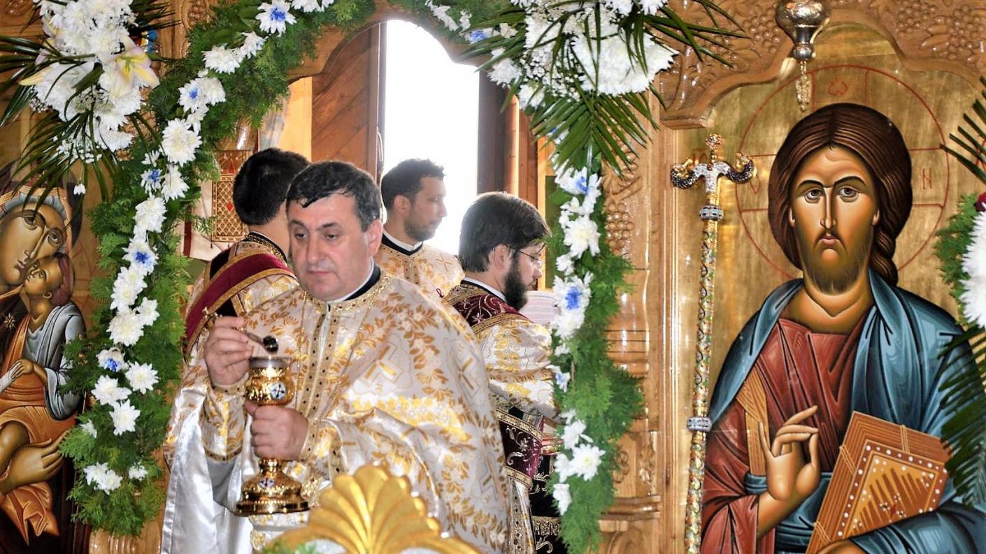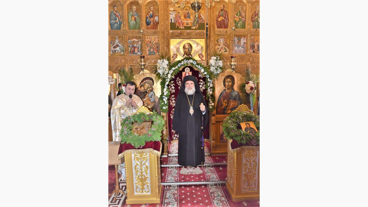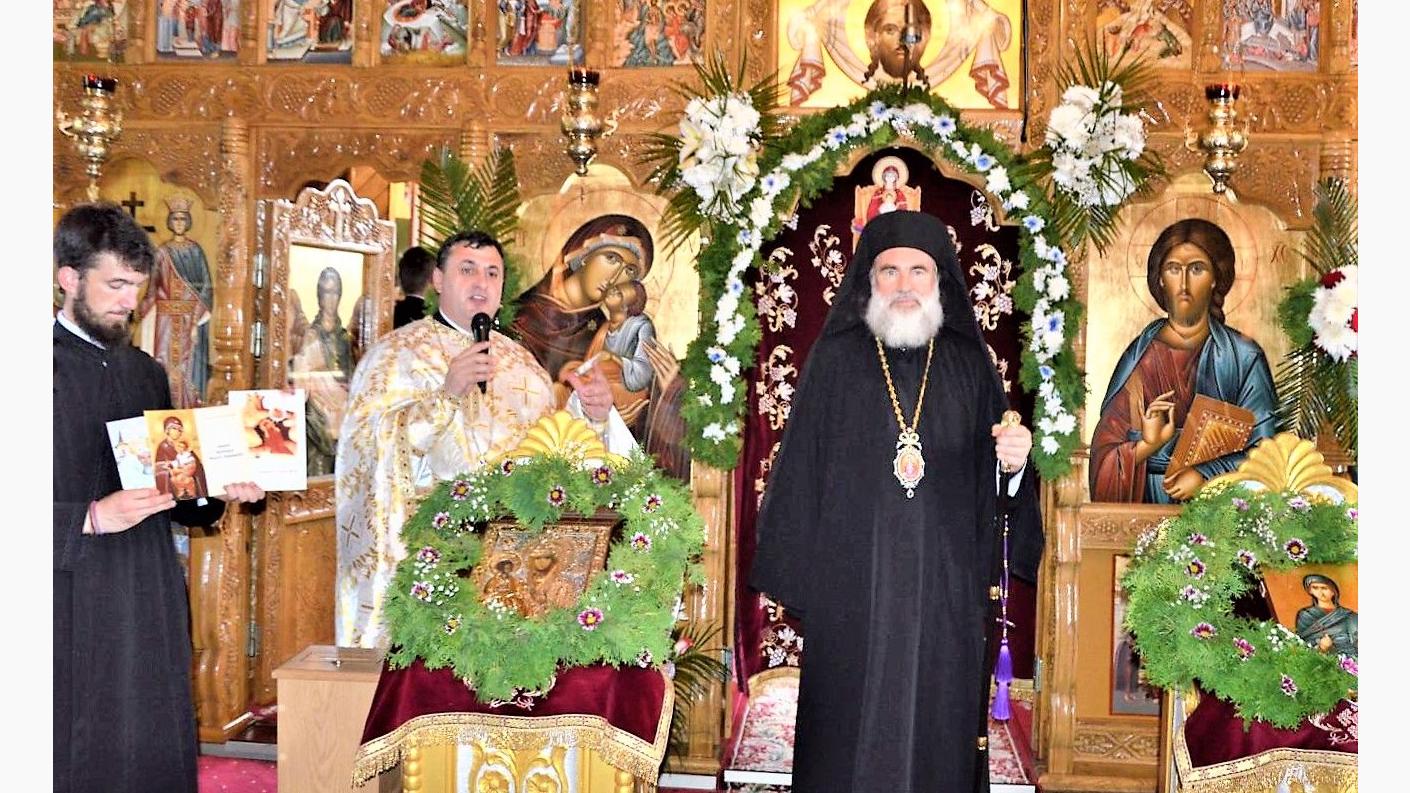 Soborul de preoți coordonat de părintele protopop Costică Busuioc a întâmpinat pe Înaltpreasfințitul Părinte Arhiepiscop Ioachim în dimineața zilei de 22 iulie 2019, sosit pentru a oficia slujba Sfintei Liturghii la biserica cu hramul Acoperământul Maicii Domnului.