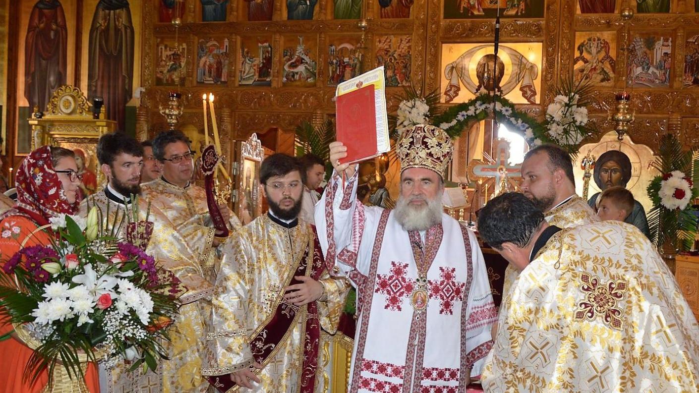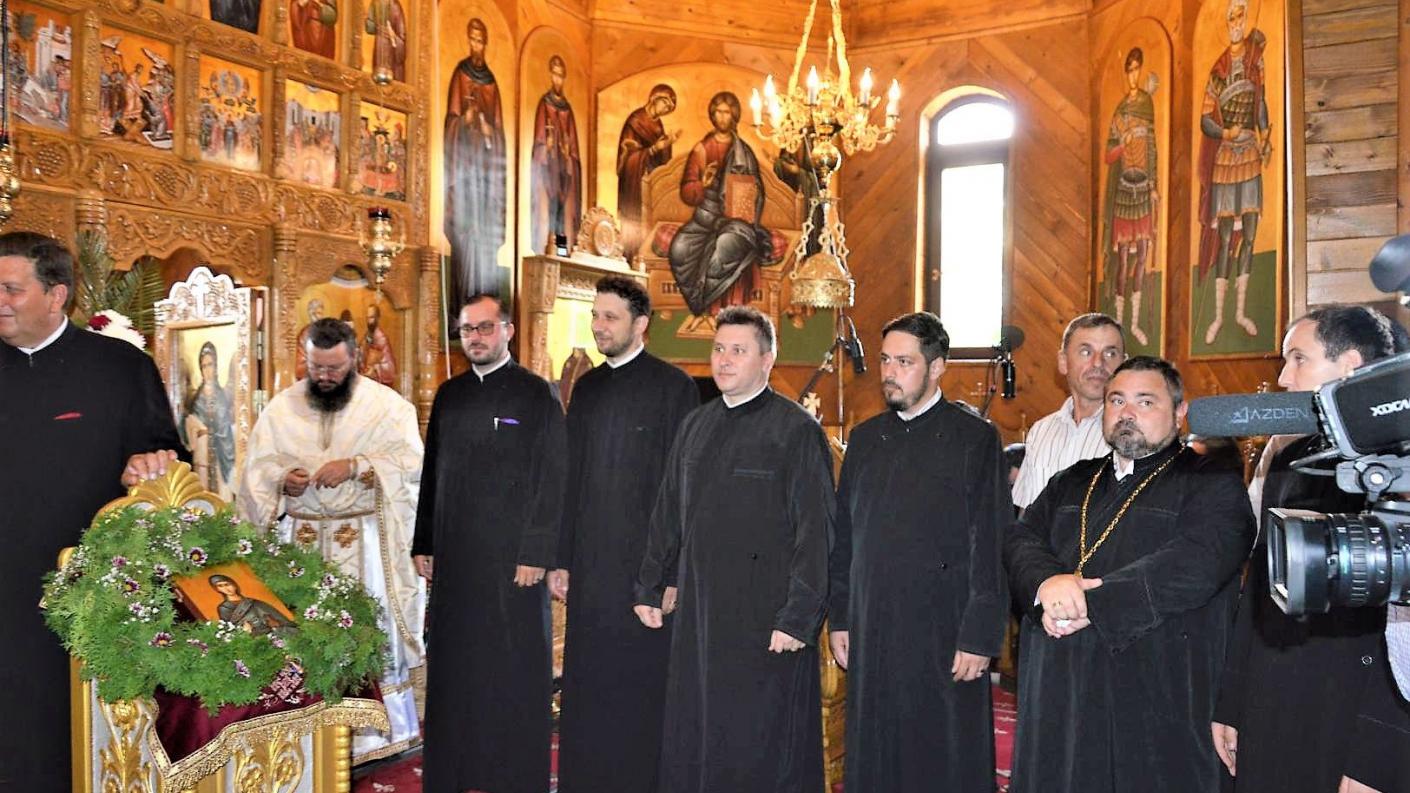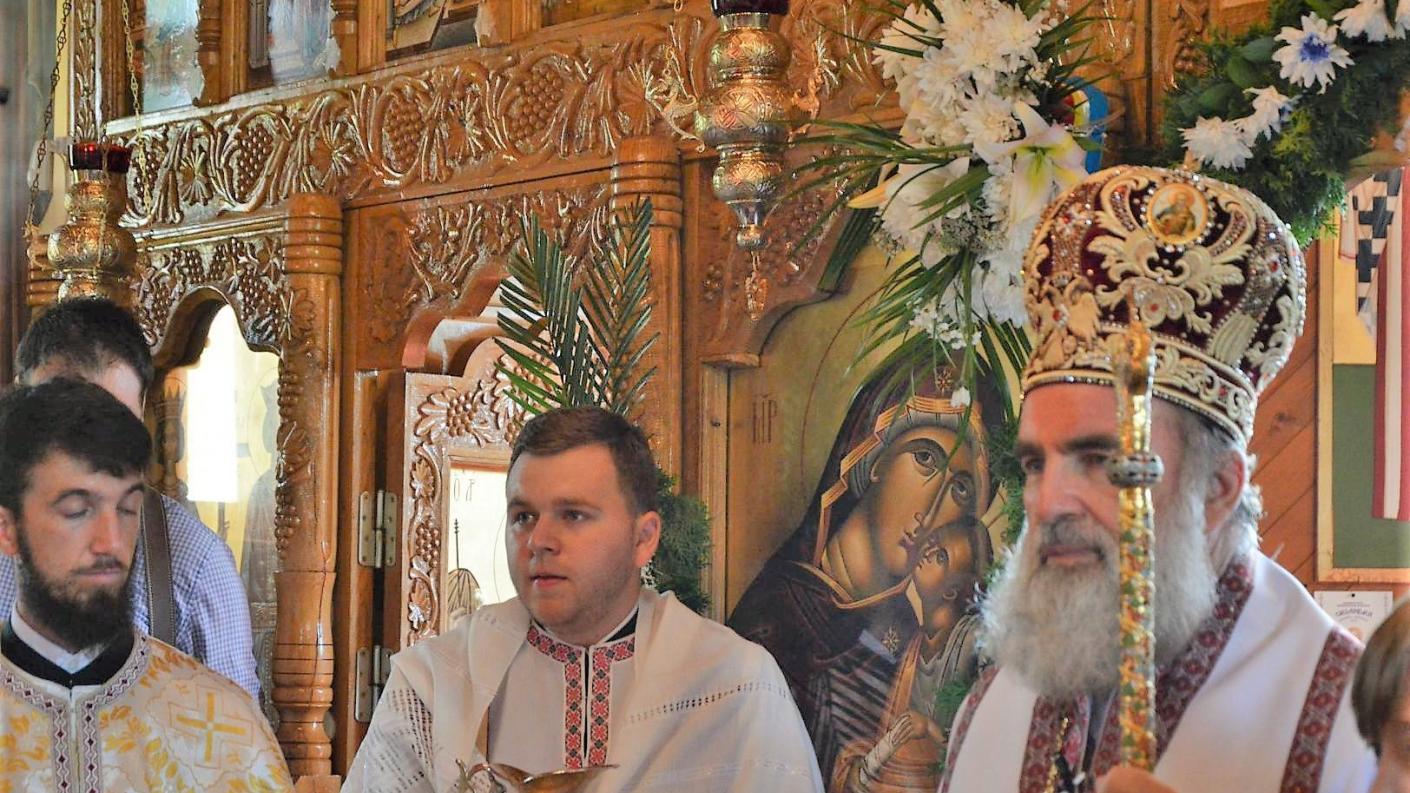 Soborul de preoți coordonat de părintele protopop Costică Busuioc a întâmpinat pe Înaltpreasfințitul Părinte Arhiepiscop Ioachim în dimineața zilei de 22 iulie 2019, sosit pentru a oficia slujba Sfintei Liturghii la biserica cu hramul Acoperământul Maicii Domnului.
