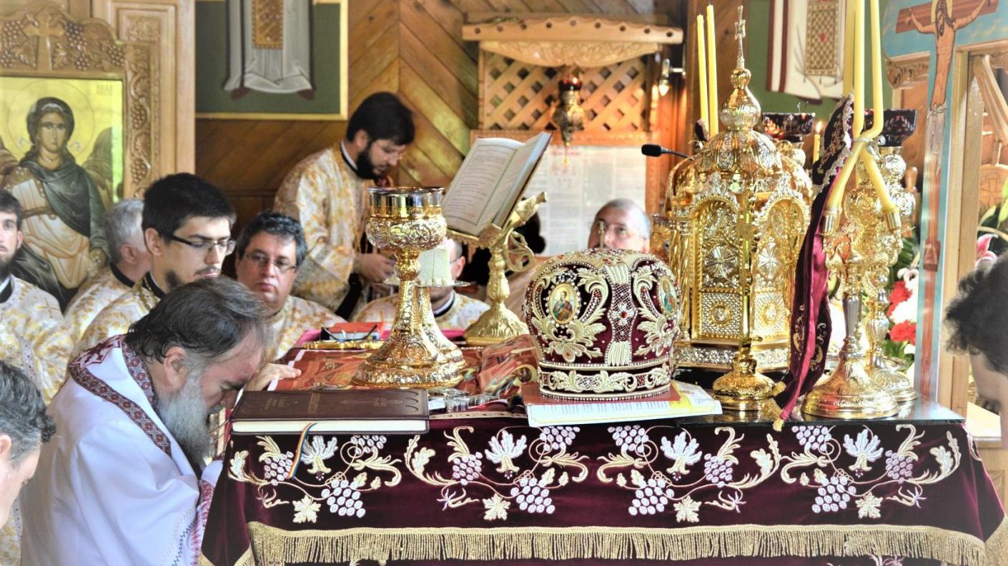 Această urcare către cruce și către Acoperământul Maicii Domnului, aici pe Meteora Bacăului, este făcută cu multă evlavie, iar pașii pe care îi faceți sunt numărați de Dumnezeu și de îngeri. Astăzi o serbăm pe această mare mironosiță a Bisericii lui Hristos, pe Maria Magdalena. Ne-am bucurat să vedem cum Liturghia de astăzi a proiectat pe chipurile dvs, cler și credincioși, Lumina lui Dumnezeu. În Liturghie dragii mei se petrece totul. În Liturghie botezăm și dăm primele Taine, în Liturghie pecetluim cu pecetea Duhului Sfânt pe cei care intră prin botez în viață și în trupul tainic al Mântuitorului nostru Iisus Hristos.