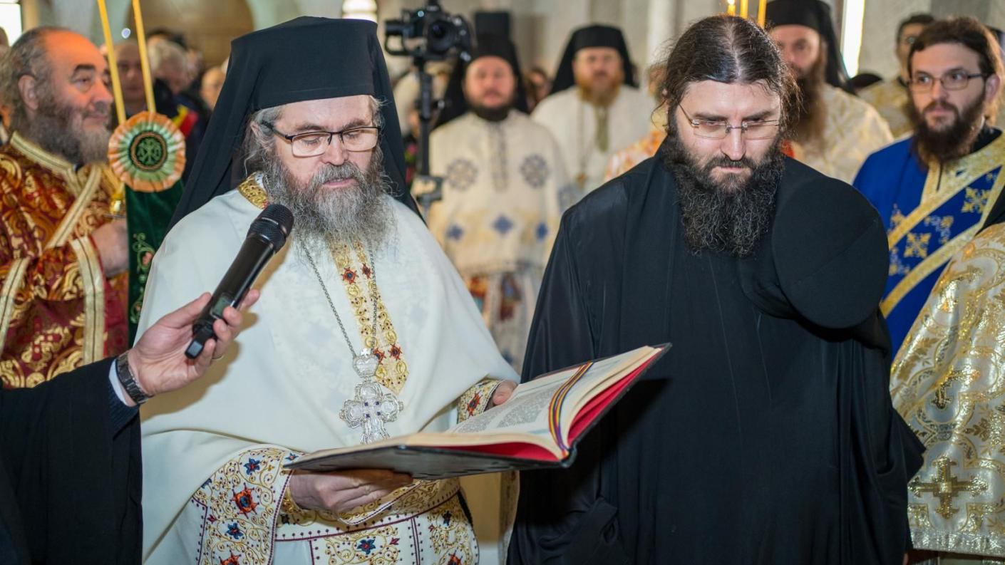 În prima parte a slujbei IPS Ioachim a numit ca și stareț al mănăstirii băcăuane pe părintele ieromonah Calinic Corceag.