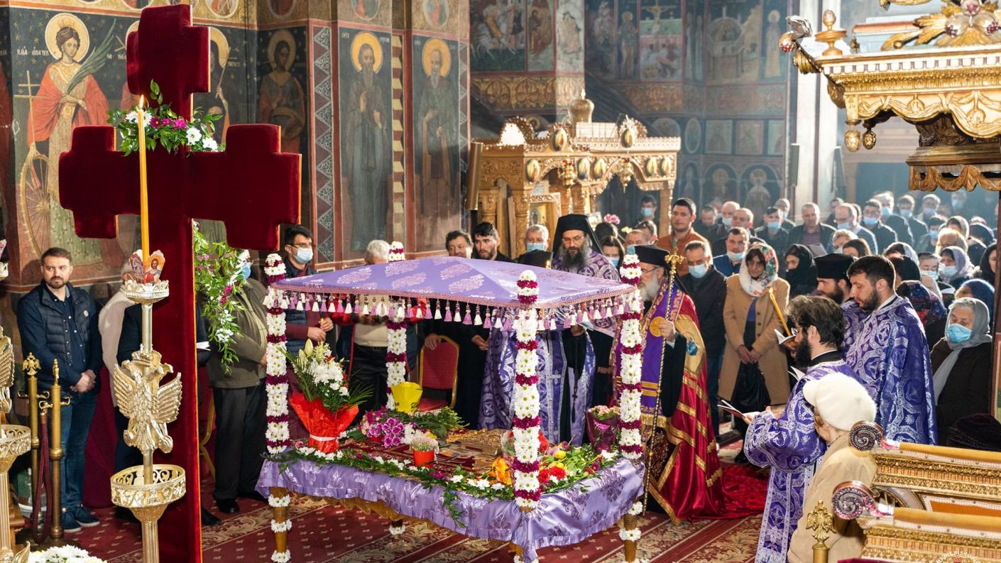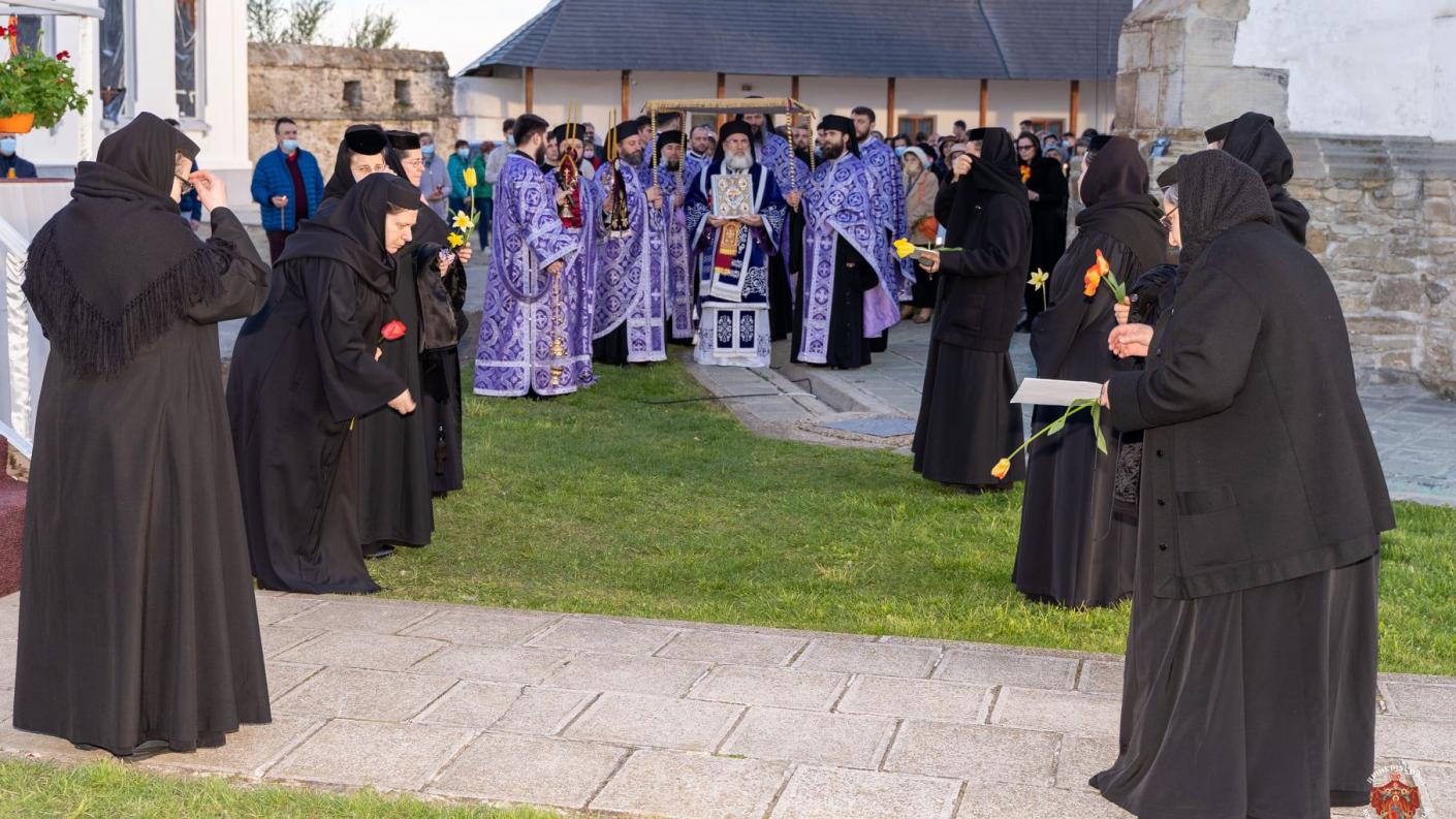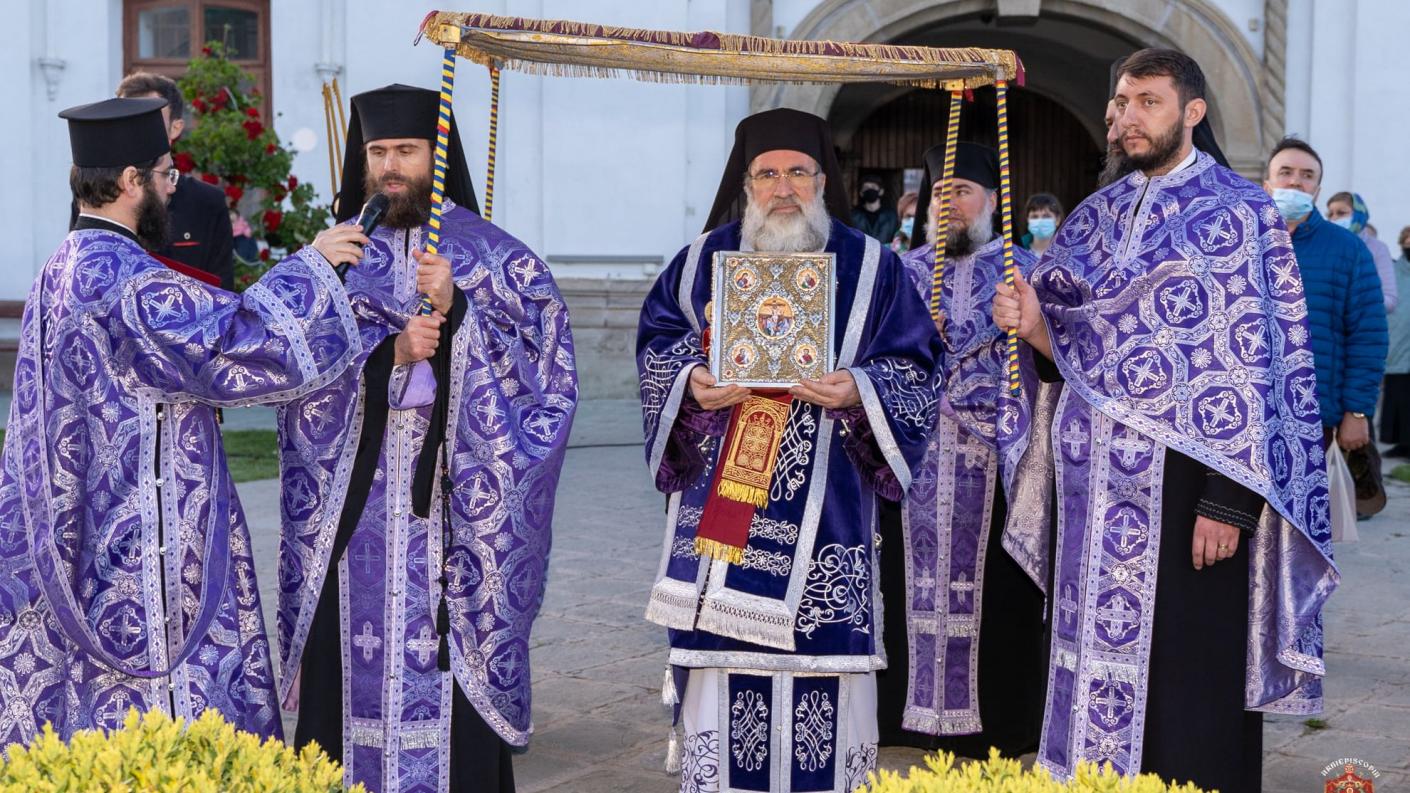 După procesiune, toți credincioșii au trecut pe sub Sfântul Epitaf la intrarea în lăcașul de cult și au primit binecuvântarea Înaltpreasfințitului Părinte Ioachim. Apoi, într-o atmosferă de solemnitate, Sfântul Epitaf a fost așezat pe Sfânta Masă, unde va rămâne până în ajunul Înălțării Domnului.