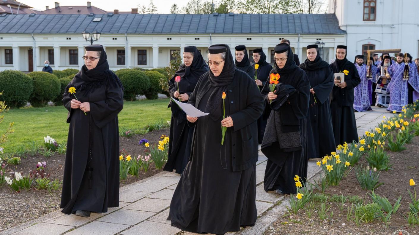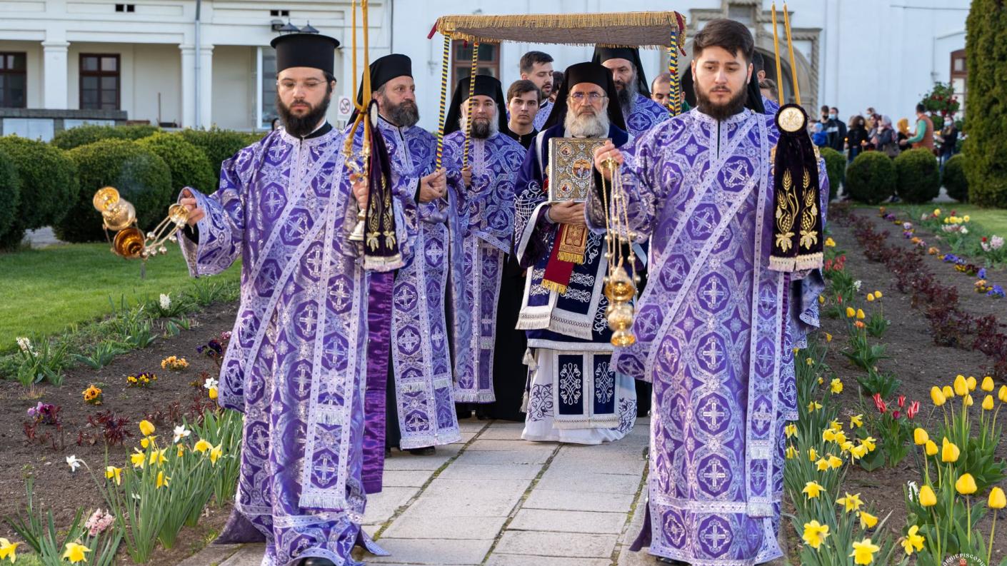 La sfârșitul cântării Doxologiei, din cadrul Deniei din această seară, cei prezenți au luat parte, în sunetul clopotelor și al cântărilor sfinte, la tradiționala procesiune în jurul Catedralei Arhiepiscopale, care simbolizează ducerea către mormânt a Trupului Mântuitorului, oprindu-se conform rânduielilor tipiconale specifice acestei seri, în patru locuri, de jur împrejurul bisericii, corespondente celor patru puncte cardinale, la fiecare oprire fiind rostită câte o ectenie.