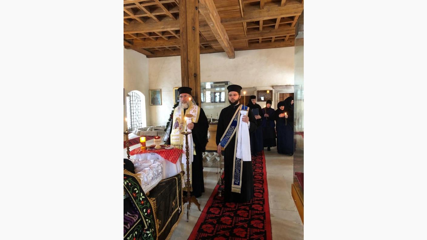 Trecerea unui creștin (monah sau mirean) în Împărăția lui Dumnezeu este, întâi de toate, prilej de rugăciune pentru sufletul celui adormit, dar și pentru familia îndurerată. În aceste momente, Biserica se roagă pentru „odihna sufletului (…) iertarea greșelii cea de voie și cea fără de voie (…) ca Domnul Dumnezeu să așeze sufletul lui unde drepții se odihnesc…”. Aceste clipe de rugăciune sunt cunoscute în practica liturgică drept „slujba stâlpilor” – numele venind de la versetul biblic care numește Biserica „stâlp și temelie a adevărului” (I Timotei, 3, 15). Astfel, împlinind cuvântul biblic și misiunea lui Hristos cu timp și fără timp, Înaltpreasfințitul Părinte Ioachim, Arhiepiscopul Romanului și Bacăului, a oficiat slujba aceasta specială pentru maica Eufrosina Grosaru.