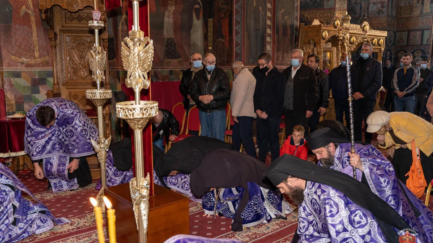 Urmând modelul ierarhului, toți cei prezenți, preoți și credincioși și-au plecat genunchii închinându-se și rugându-se la picioarele ”Celui ce a spânnzurat pământul pe ape”.