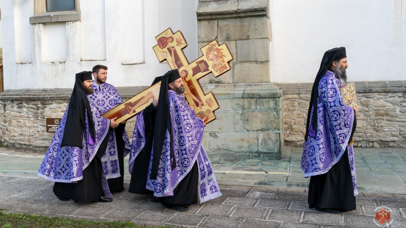 Ca și în anii anteriori, în timpul Antifonului al XV-lea, în dangătul clopotelor, Înaltpreasfințitul Părinte Ioachim a purtat în procesiune pe umeri Sfânta Cruce, pe care este pictată răstignirea Mântuitorului Iisus Hristos, purtând-o în mijlocul bisericii și apoi fiind așezată spre închinare pentru clerici, monahi și monahii.
