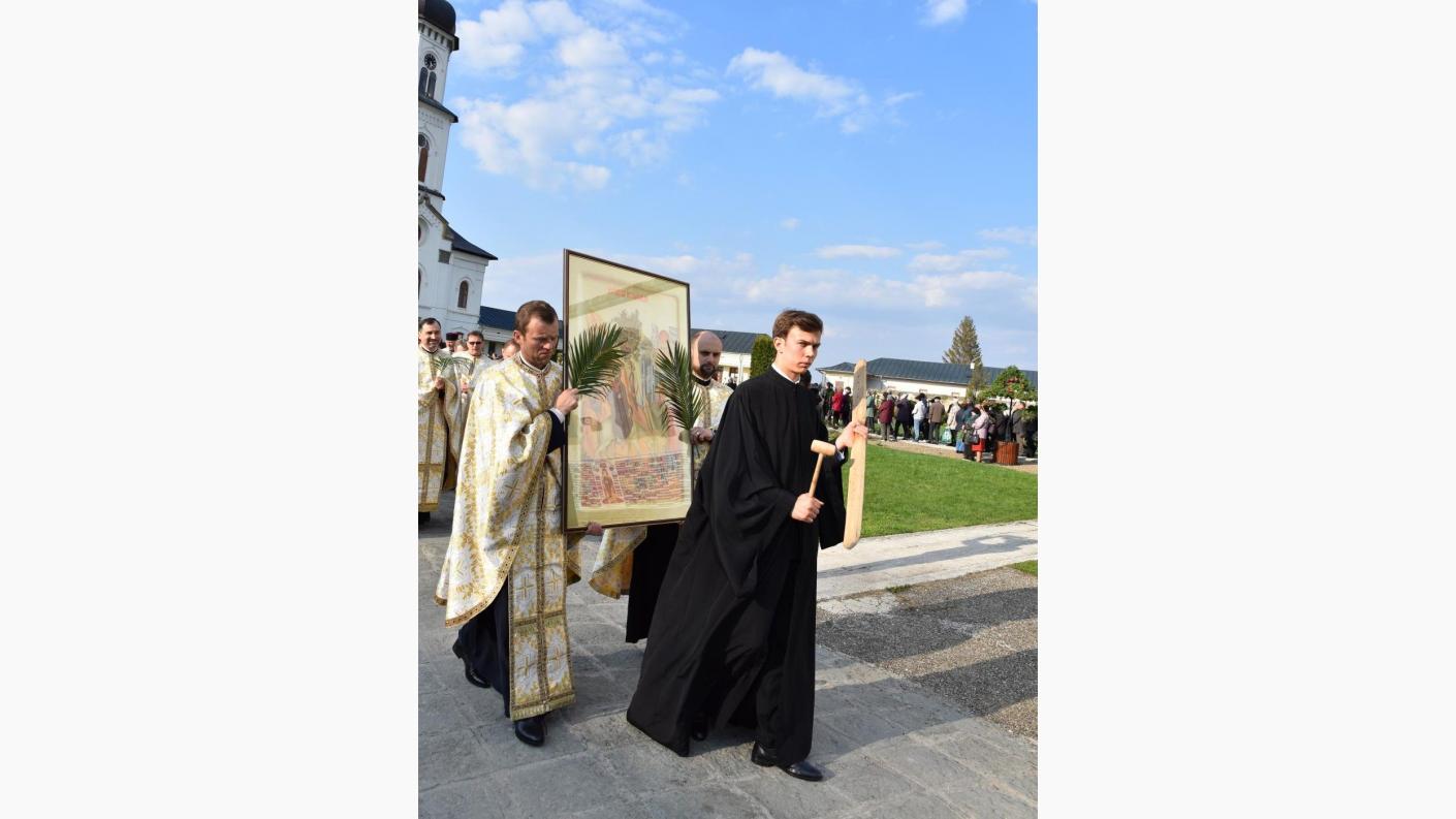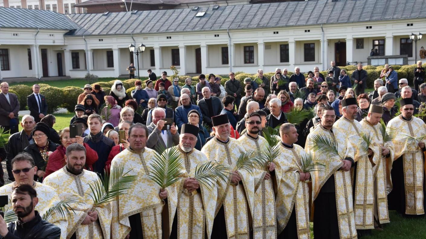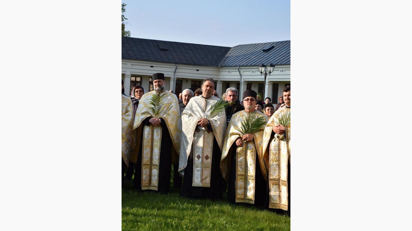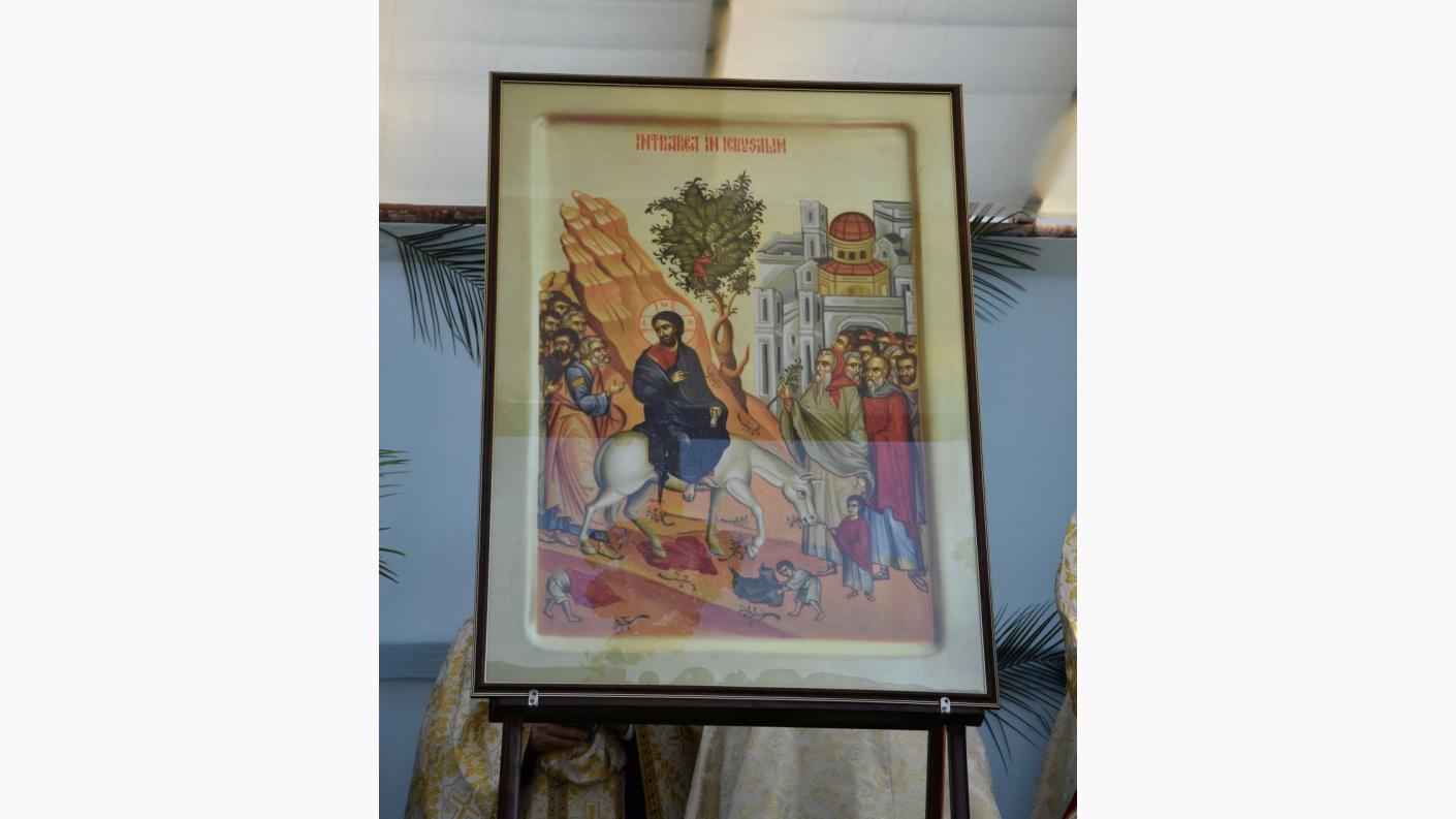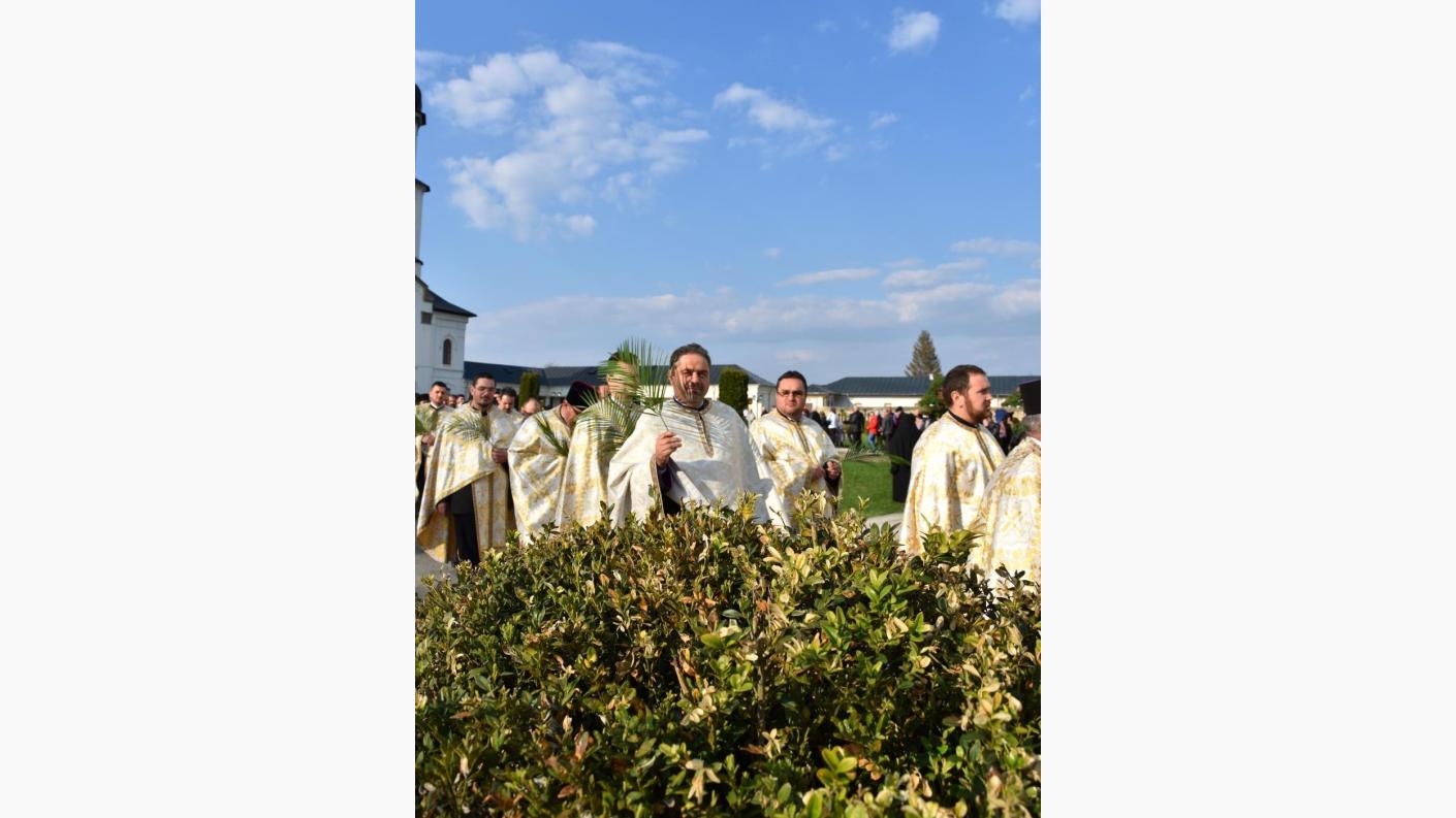 Iubiți credincioși, iată și noi aici la Centrul eparhial de la Roman facem amintire despre evenimentul care a fost făcut de către Mântuitorul Iisus Hristos înainte de pătimirea Sa cea mântuitoare, pentru faptul că acea pătimire de atunci se recapitulează și se trăiește plenar în fiecare an de către biserica Sa. Astăzi facem pomenire despre acel eveniment crucial pentru întregul Univers. Și noi am devenit ca acei prunci de atunci care cântau întru nevinovăția lor: Osana, fiul lui David, binecuvântat este cel care vine întru numele Domnului! Tot așa, ca și atunci, trebuie să avem aceeași curățenie și inocență, sufletește purtând aceste ramuri sau palmete de finic în mâini. Acestea nu sunt altceva decât simbolul faptelor noastre celor bune pe care încercăm să le prezentăm înaintea Celui care a pătimit pentru umanitate, tocmai pentru ca ea să trăiască veșnic. Să se transfigureze și nu să se desfigureze!