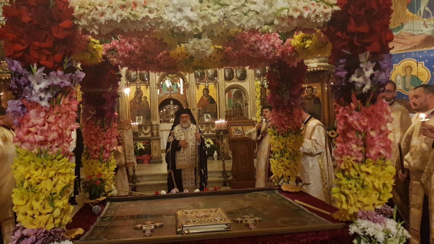 Mă bucur că am reușit să fiu prezent în mijlocul dumneavoastră pentru a cinsti această zi la începutul sărbătorii care s-a făcut din punct de vedere liturgic acum câteva zile. Sărbătoarea aceasta a Maicii Domnului este un fel de Paște de vară, acum fiind sărbătorită învierea ei. Comuniunea se creează atunci când împărțim darurile pe care le primim de la Dumnezeu în mod simbolic și aceasta înseamnă că se sfințește viața noastră. Acest marș sacru care se face în jurul bisericii arată că Dumnezeu coboară în locașul Său sfințit și sfințește sufletele noastre prin dobândirea harului Duhului Sfânt.