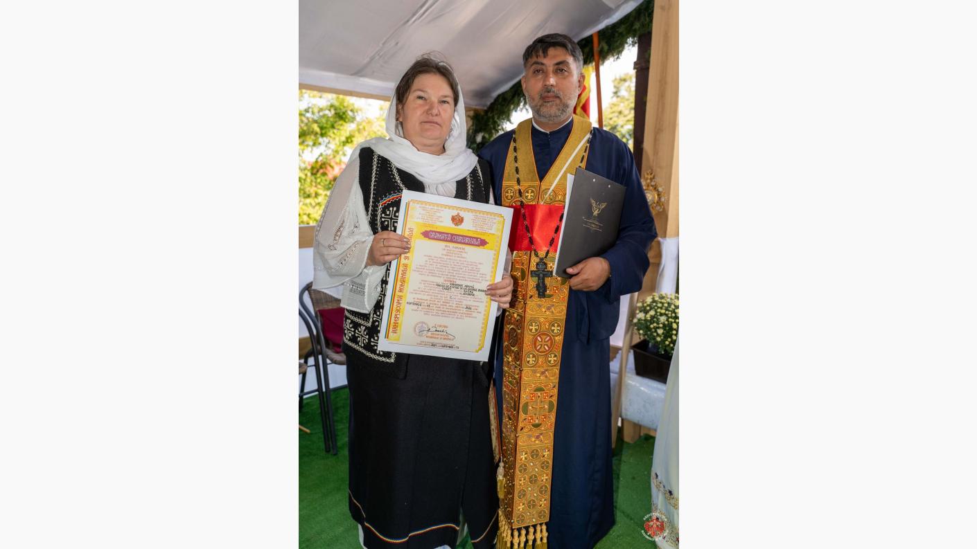 După slujbă, Înaltpreasfințitul Părinte Ioachim a felicitat pe toți cei care s-au implicat în lucrarea de restaurare și a oferit preotului paroh, la recomandarea părintelui protopop, distincția onorifică de iconom stavrofor.