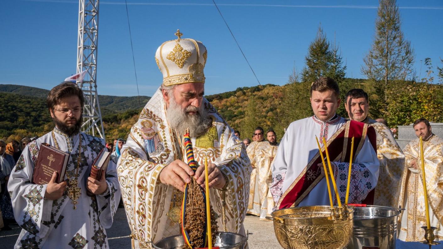 În debutul acestei zile de înaltă trăire duhovnicească, Înaltpreasfinţitul Părinte Ioachim a săvârşit slujba de sfinţire a clopotniţei nou edificată, „cea care cheamă cu glasul ei la rugăciune şi comuniune pe cei vii, plânge pe cei decedați şi ocrotește oraşul sau satul de furtuni şi fulgere”.