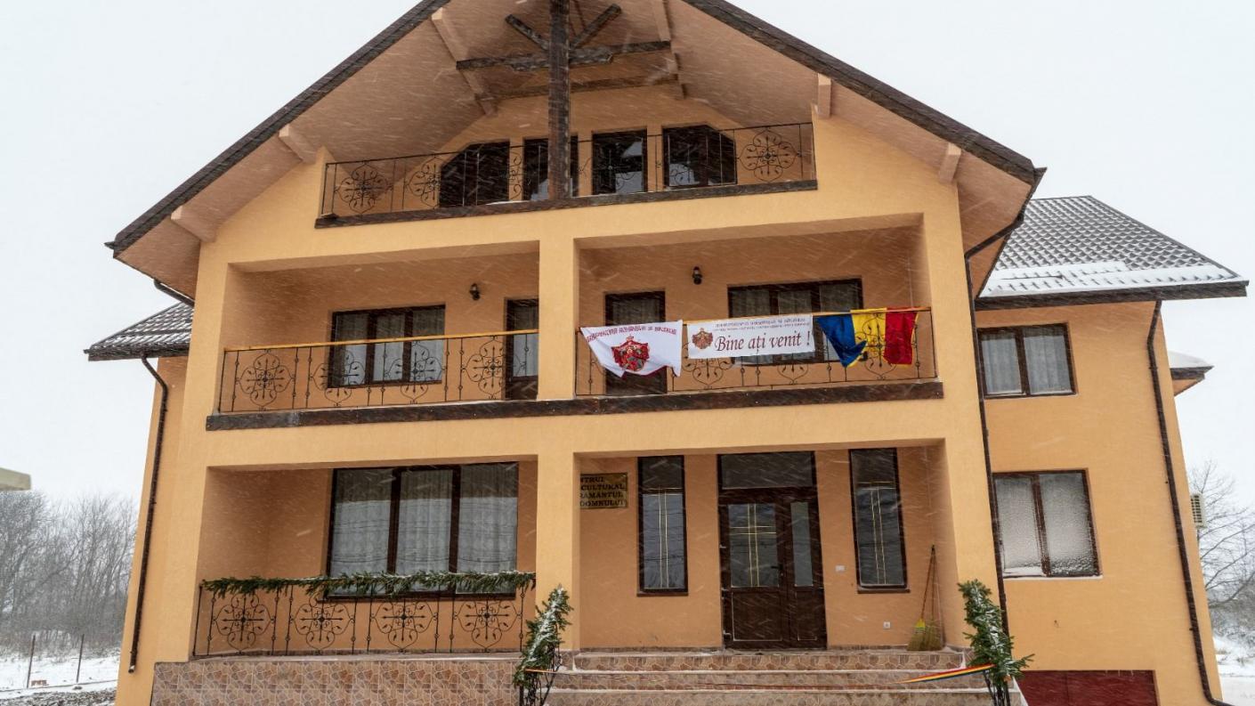 Acesta este compartimentat și cuprinde o sală de mese, bucătărie, un birou parohial și câteva camere de locuit. Aici vor fi desfășurate activitățile misionar-pastorale ale parohiei, orele de cateheză cu tinerii și alte acțiuni sociale.