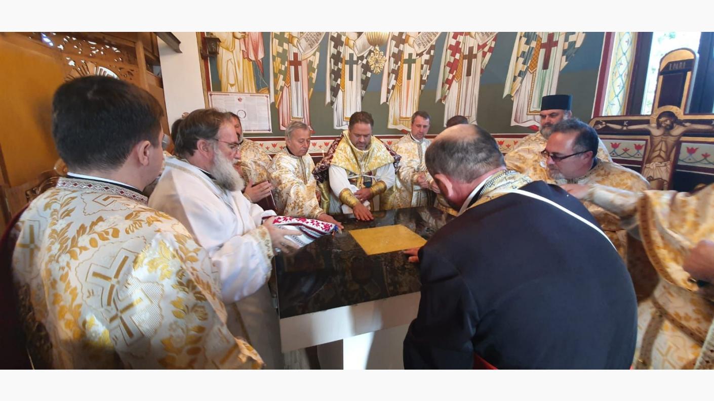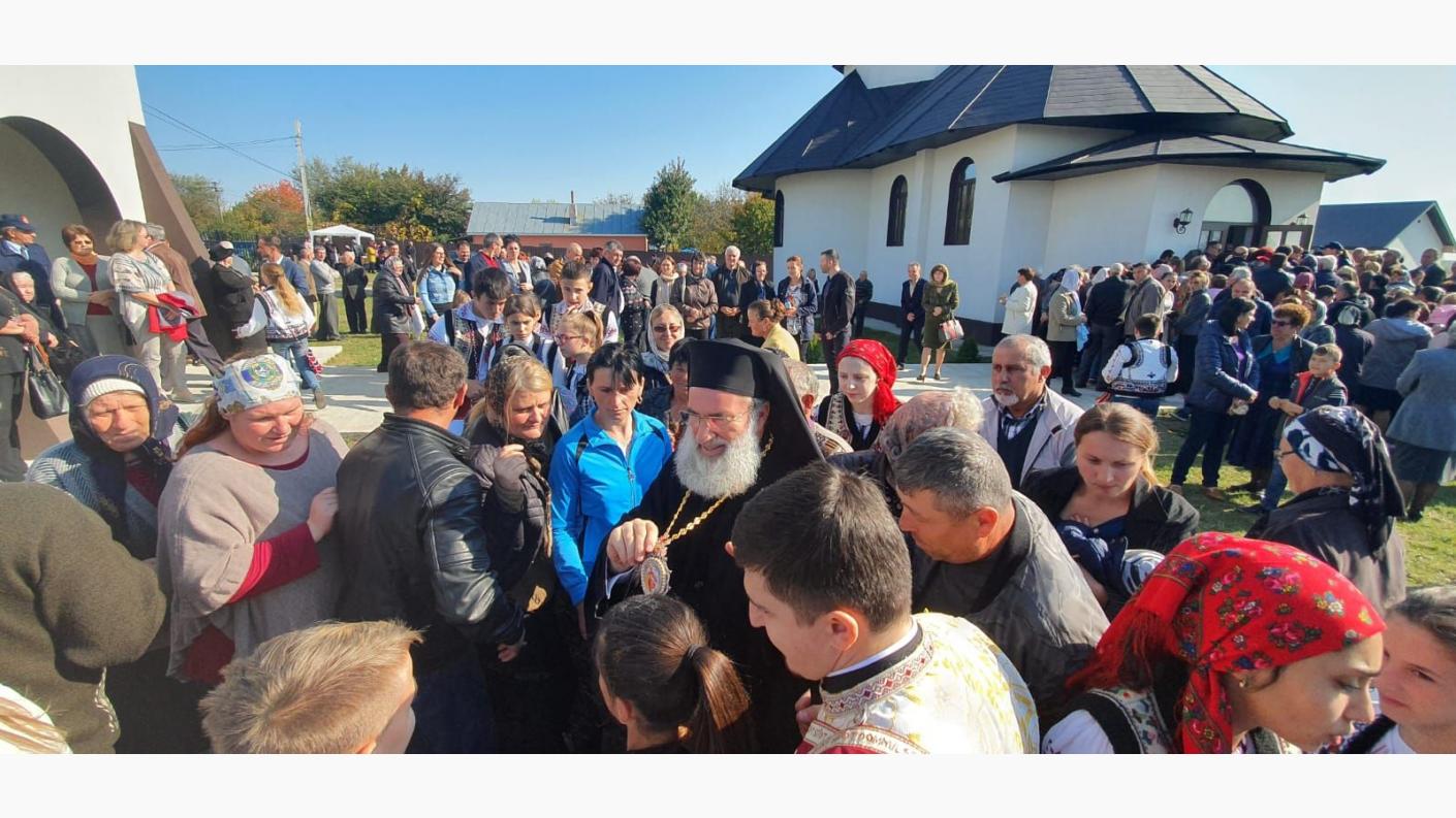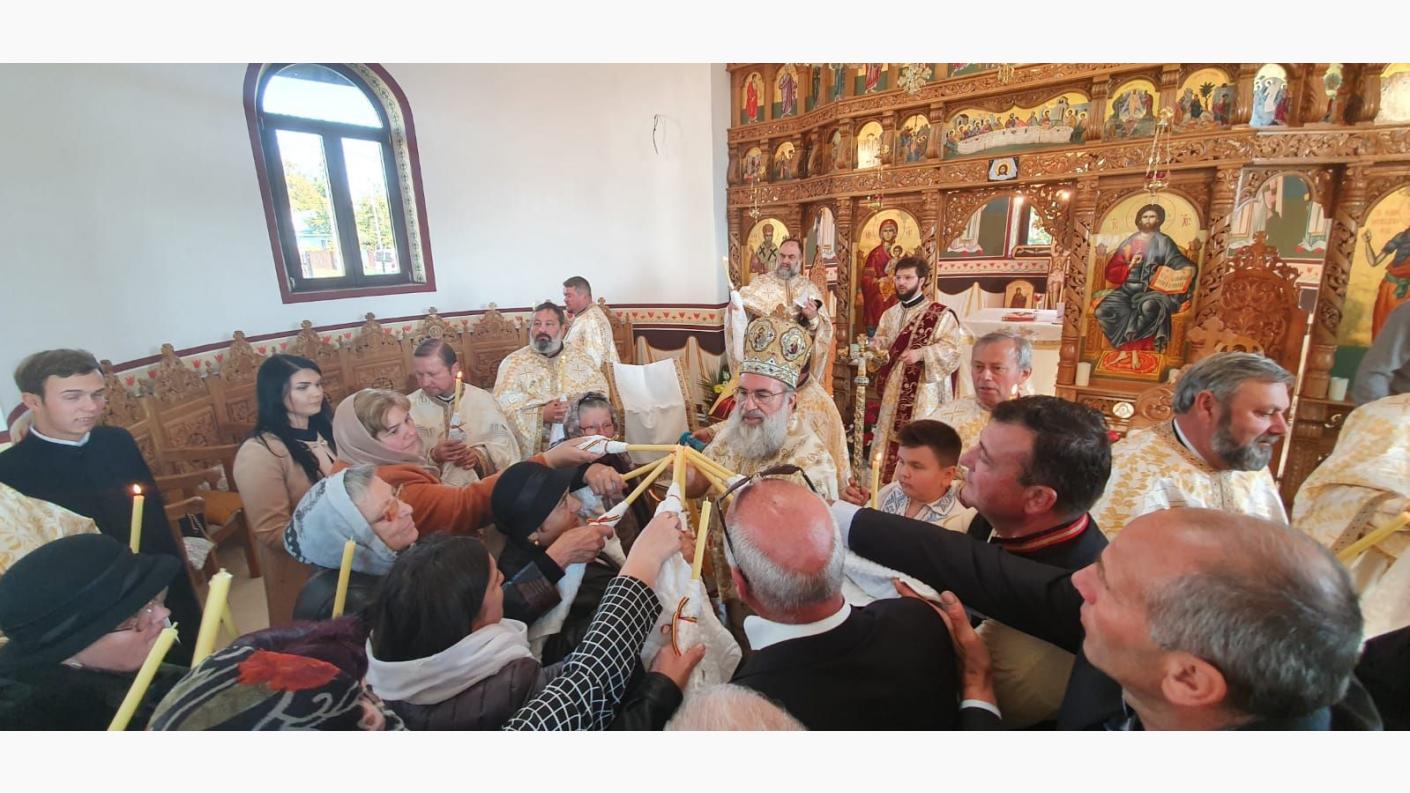 Aici, un sobor de preoți coordonat de părintele protopop Dragoș Munteanu, au oficiat alături de Înaltpreasfințitul Părinte Ioachim slujba de sfințire a lăcașului de cult de curând ridicat și au slujit Sfânta Liturghie. La slujbă au participat și oficialități locale, precum şi mulţime de popor, aducând prin aceasta laudă lui Dumnezeu, Care i-a ocrotit și învrednicit să împlinească această lucrare.