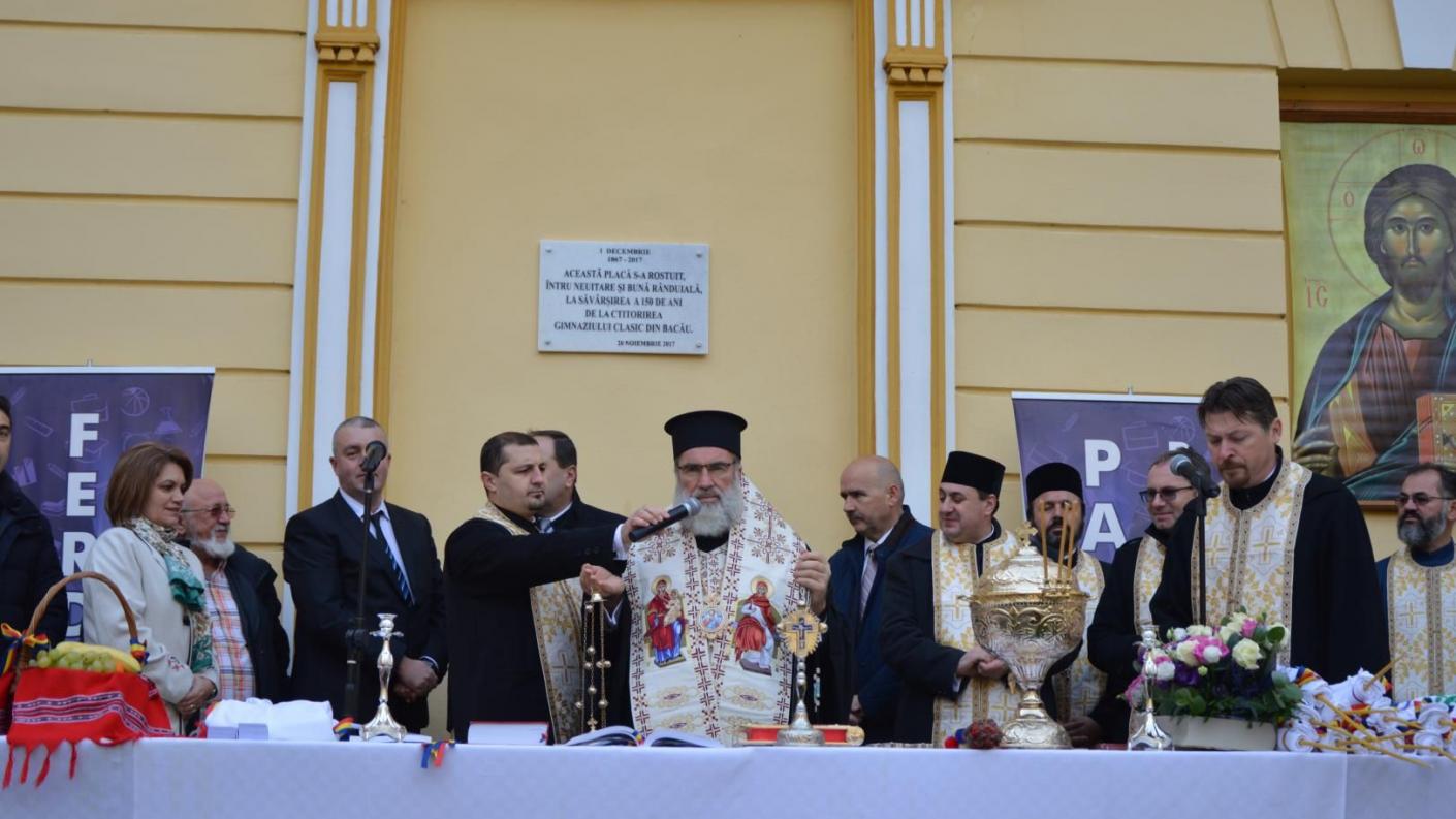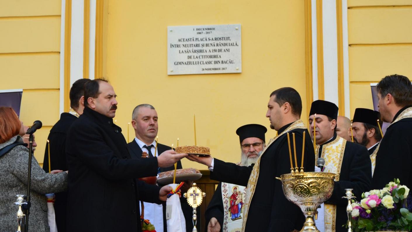 Debutul evenimentului acestei reprezentative instituții de învățământ a avut loc în dimineața zilei de 20 noiembrie a.c. când IPS Ioachim, Arhiepiscopul Romanului și Bacăului, în prezența unui sobor de preoți a oficiat o slujbă de Tedeum și a sfințit placa comemorativă Ferdinand 150 de ani. De asemenea, Părintele Arhiepiscop a săvârșit și o slujbă de pomenire pentru profesorii care au predat și elevii care au învățat în această instituție, trecuți acum în veșnicie.