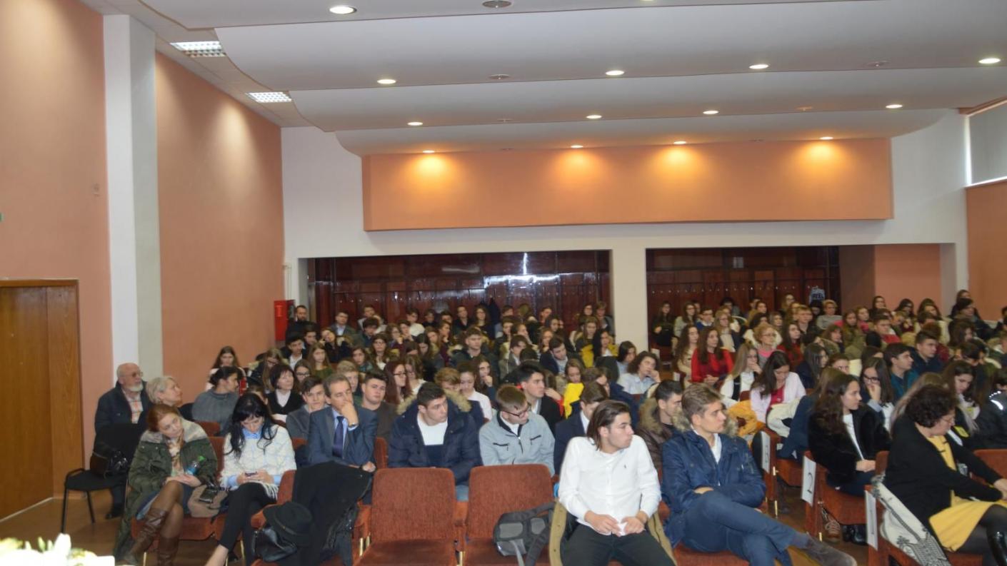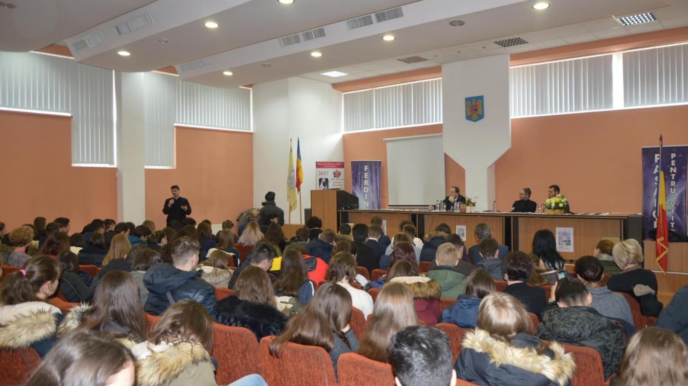 După slujbă, în sala A.P.I.A., vizavi de Colegiul Național „Ferdinand I” a avut loc conferința Tinerii între libertate și responsabilitate, ce a fost susţinută de părintele diacon Conf. Univ. Dr. Sorin Mihalache și care a adunat pe tinerii elevi însetați de cunoaștere și descoperire a frumosului în viața lor.