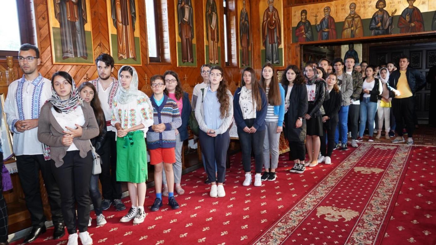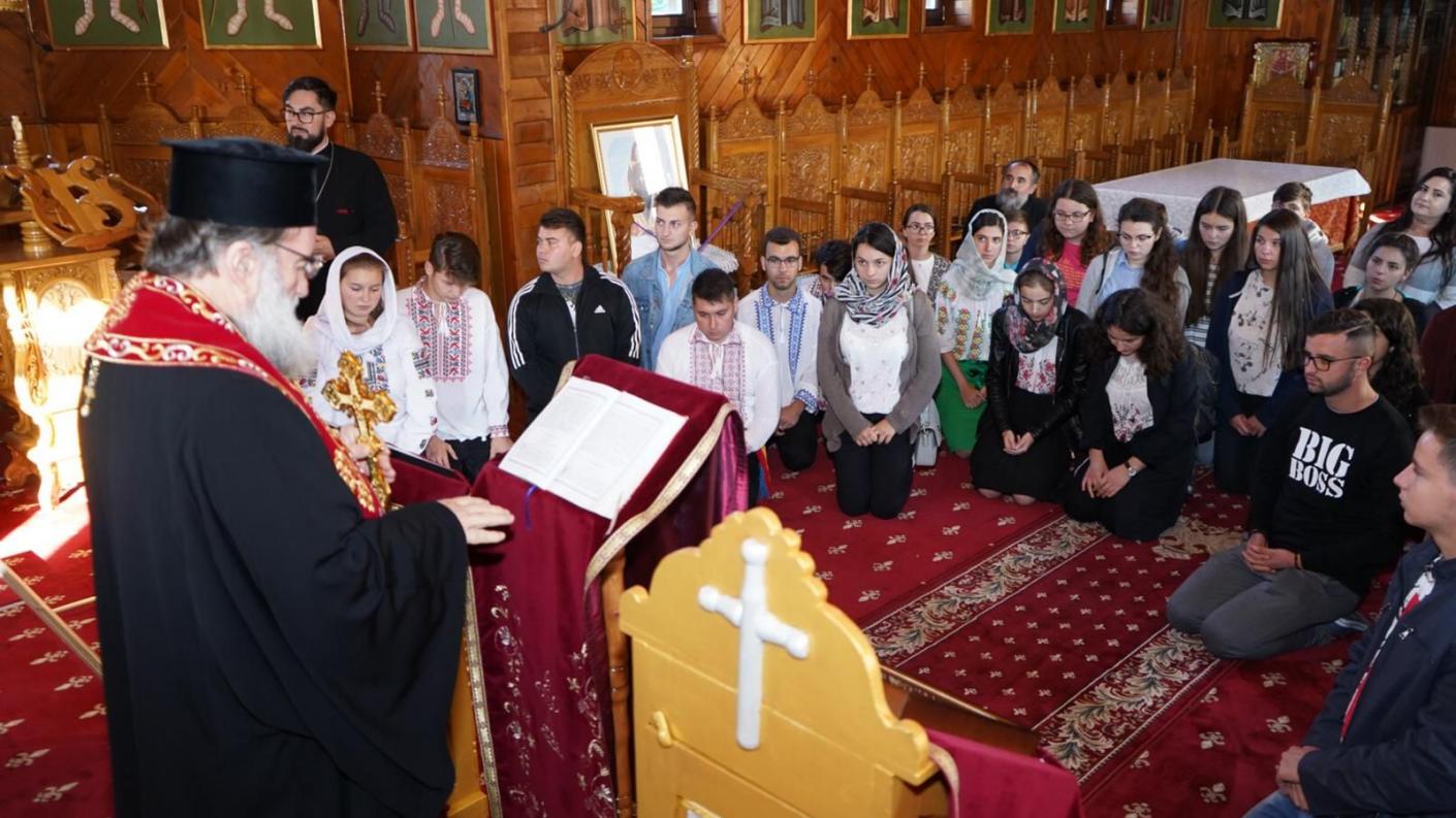 La primele ore ale dimineții de joi, grupul de tineri a fost întâmpinat la mănăstirea de la Valea Budului din proximitatea Bacăului de către IPS Părinte Arhiepiscop Ioachim, care i-a binecuvântat și a citit o rugăciune de binecuvântare a călătoriei. De asemenea, Ierarhul le-a încredințat tinerilor drapelul eparhial.