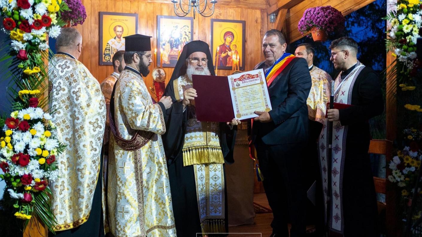 Pentru zelul misionar-pastoral manifestat în exercitarea mandatului încredințat de către Înaltpreasfințitul Părinte Arhiepiscop Ioachim, prin lucrările de înfrumusețare derulate, ierarhul a hirotesit întru iconom stavrofor pe părintele paroh, oferindu-i însemnele specifice acestei trepte: Crucea, bedernița și brâul roșu.