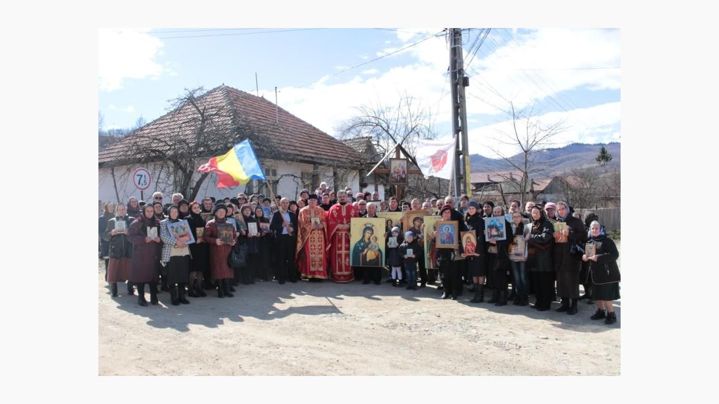 Au fost purtate pe brațe, ca niște Odoare scumpe, Icoanele Bisericii, de la cea mai veche, icoana Nașterii Domnului din 1860, până la cele mai recent pictate. Închinarea la aceleași icoane, la care s-au închinat, de-a lungul timpului, moșii şi strămoșii noștri, a creat o punte nevăzută între generații, proiectând spre viitor o rază de speranță, zărită pe chipurile copiilor ce purtau icoane, că va dăinui credința ortodoxă pe aceste locuri.