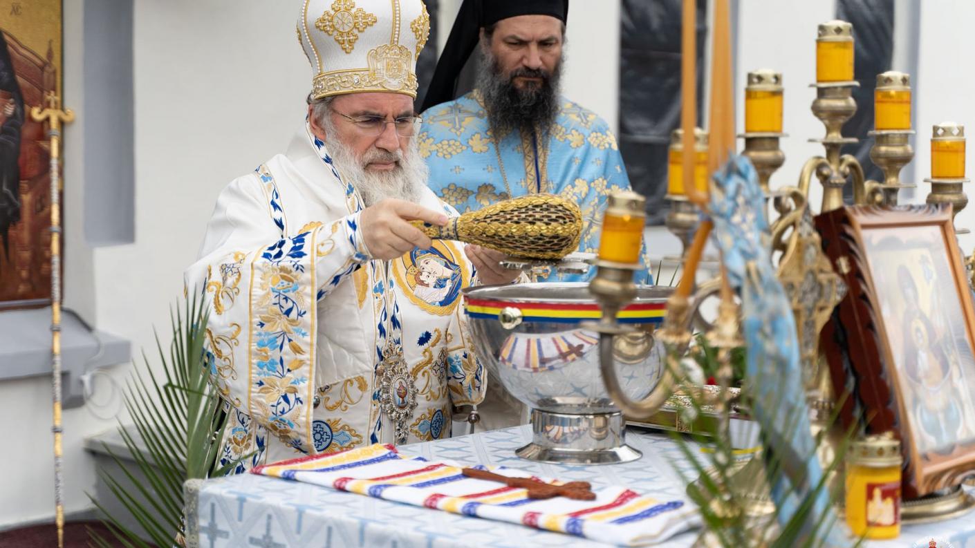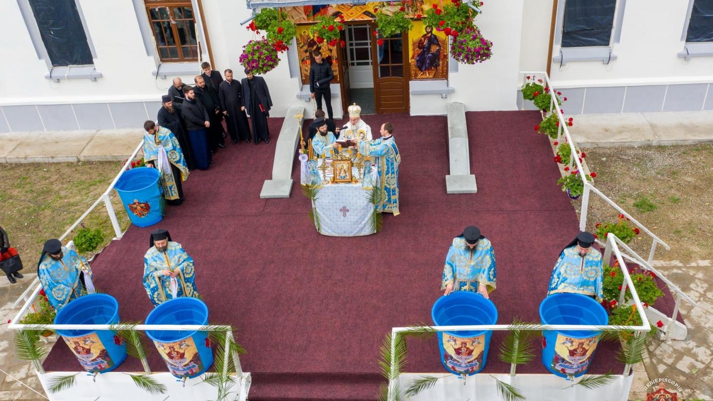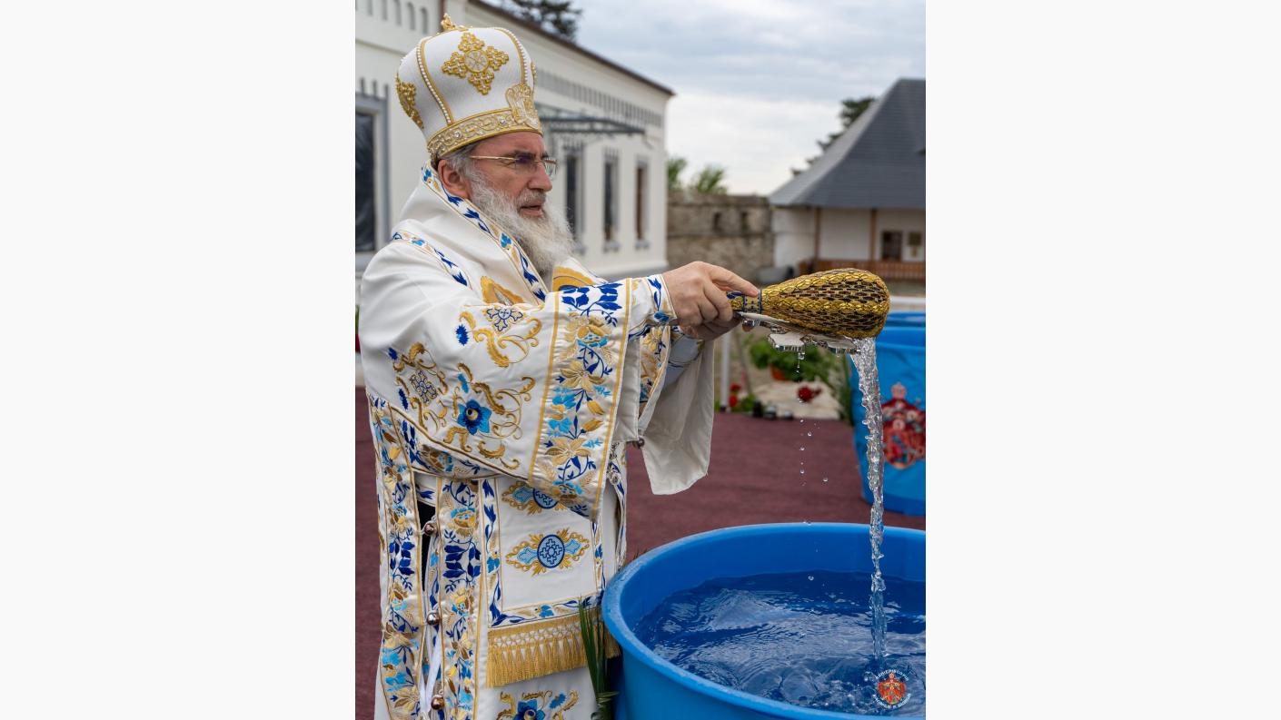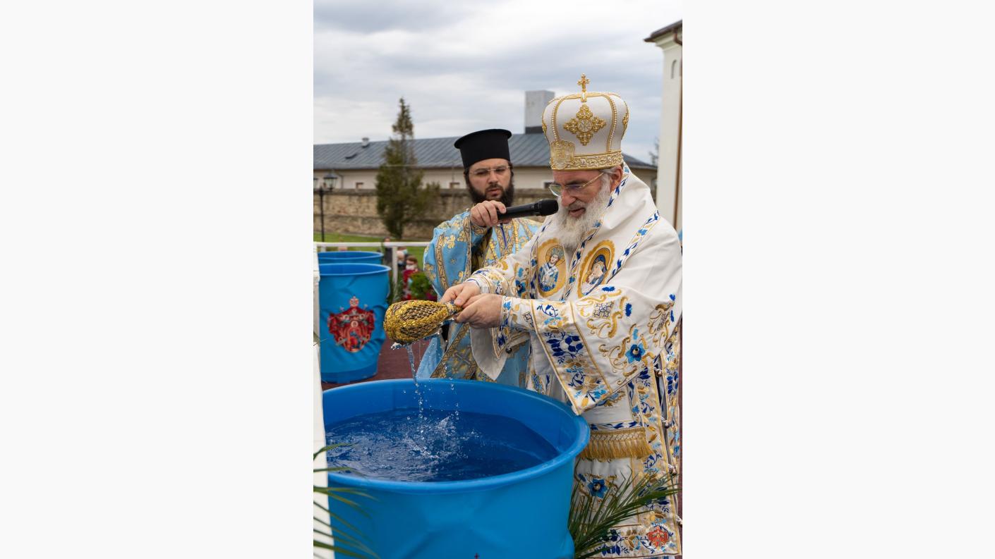 La finalul Liturghiei, pe o scenă special amenajată în curtea Centrului eparhial de la Roman, Înaltpreasfințitul Părinte Arhiepiscop Ioachim a sfințit apa dinainte pregătită după care i-a binecuvântat pe credincioșii prezenți la slujbă.