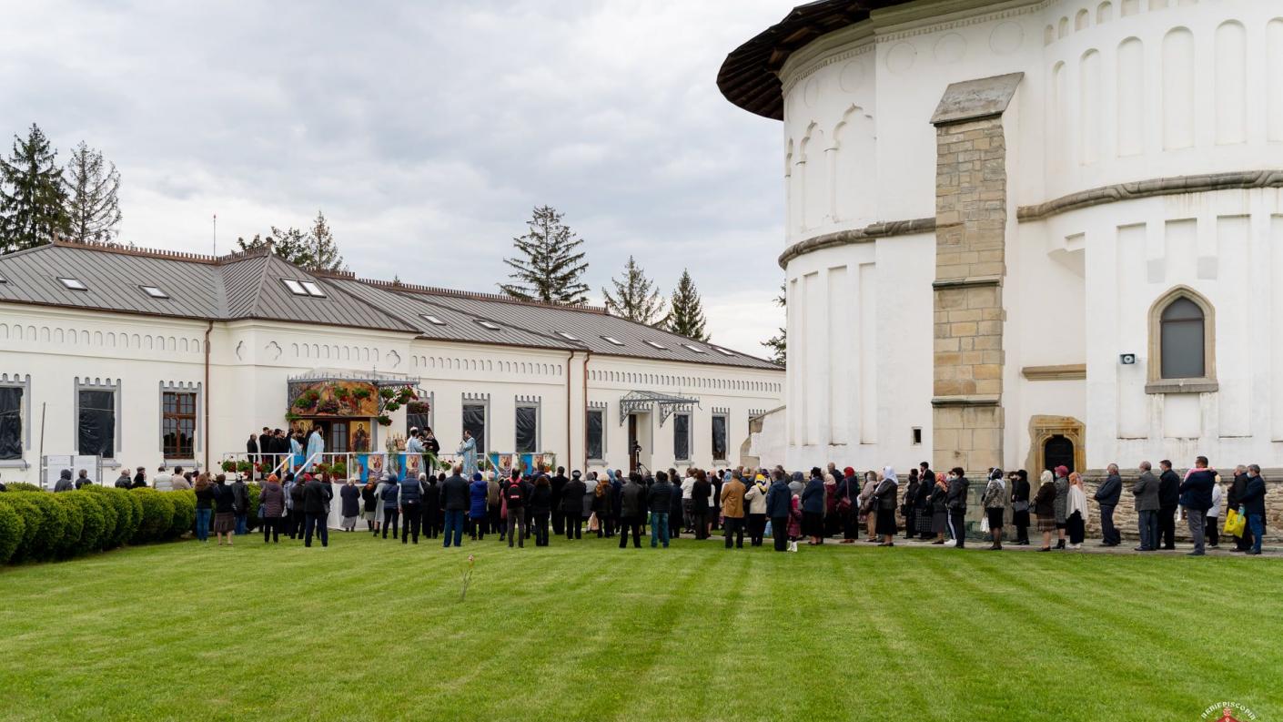 Preacuvioși părinți, preacucernici părinți, preacuvioase maici, iubiți credincioși, dacă această călătorie a noastră spre Praznicul Sfintei Învieri a fost una în care am întâlnit personaje ce ne aminteau de starea de căință sau de nevoile umane, de neputințele firești și neajunsurile sufletești, după Învierea Mântuitorului Hristos, așa cum cântările noastre bisericești ne amintesc, se schimbă însăși firea lucrurilor. Omul, aparent, este același însă condiția lui este diferită. Dacă până atunci trăia plenar moartea, ea fiind un capăt, un sfârșit de drum, după Învierea Mântuitorului Hristos moartea devine o trecere. Capătă nădejdea și încrederea că după ce se părăsește această lume naște în cer, acolo unde Mântuitorul nostru Iisus Hristos a pregătit loc tuturor acelora care au împlinit voia lui, vor sta la masă cu el, el fiind slujitorii, iar lucrătorii sunt mesenii. De altfel, este una dintre făgăduințele finale ale vieții pământești, <<Mă duc să vă pregătesc vouă loc!>>, să ne pregătească loc pentru a fi împreună cu sine, pentru a fi alături de Maica Domnului și de toți sfinții, de toți cei care prin viața lor au bineplăcut, a proorocilor vechi-testamentari și a tuturor drepților, de la Facerea lumii și până astăzi. Cu toate acestea însă, în vinerea din Săptămâna Luminată ne amintim și de Maica Domnului. Maicii Domnului, care foarte rar este întâlnită în scrierile noului Testament, Sfântul Evanghelist Luca îi pregătește și o amintește într-un capitol din Evanghelia sa, pe care o putem numi însă, fără să greșim, Evanghelia Maicii Domnului. Acolo este relatat evenimentul Bunei Vestiri și al întâlnirii cu rudenia sa Elisabeta, dintr-o cetate muntoasă a lui Iuda în casa lui Zaharia. Acest episod ne ține oarecum într-o stare de trezvie, nu atât dialogul dintre cele două, ci modul în care una învață a lăuda pe aceea ce este Născătoare de Dumnezeu, iar cealaltă, Maica Domnului, întru smerenie a sa, acceptă această bunăvoință a lui Dumnezeu îndreptată asupra ființei Sale, Facă-se voia Lui Dumnezeu, cu toate cele care vor urma și pe care tu le-ai amintit cândva, că a căutat spre smerenia roabei sale, de acum urmând a mă fericit toate neamurile! Ei bine, Maica lui Dumnezeu, Maica Domnului, s-a făcut pentru noi izvor de viață pentru că așa o numim, ea fiind Născătoare de Dumnezeu, cel care este Dătătorul vieții, plinătatea numindu-se pe sine Calea, Adevărul și Viața.