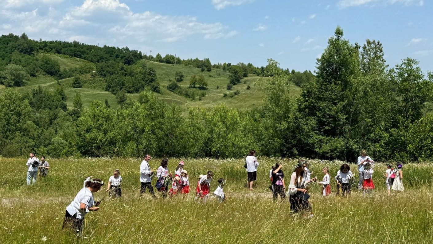 În continuare, îmbrăcați în costume populare, participanții au defilat prin sat, urcând apoi către dealurile din apropiere, unde au cules sânziene și margarete, au împletit coronițe, s-au odihnit la umbră și s-au bucurat de priveliștile mirifice ale Comăneștiului.