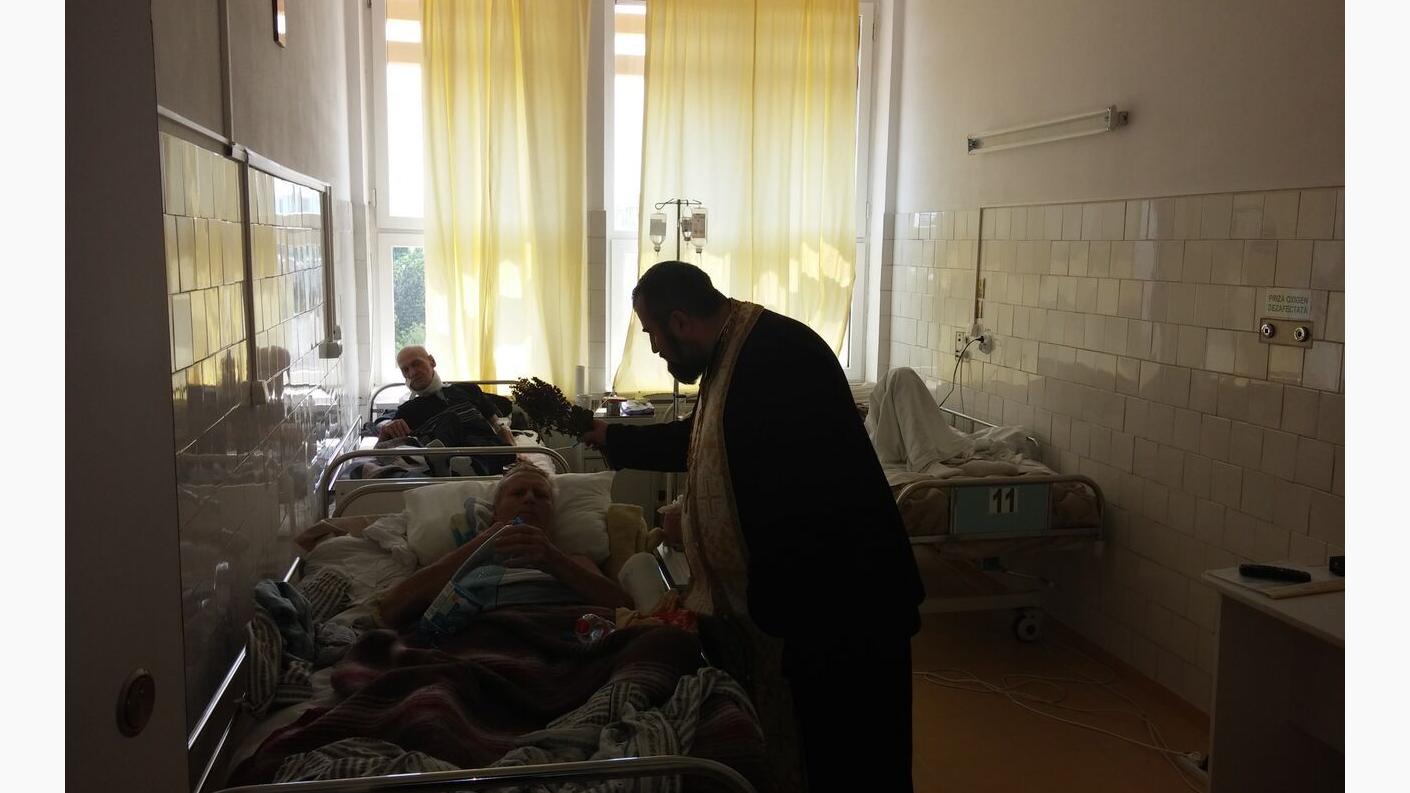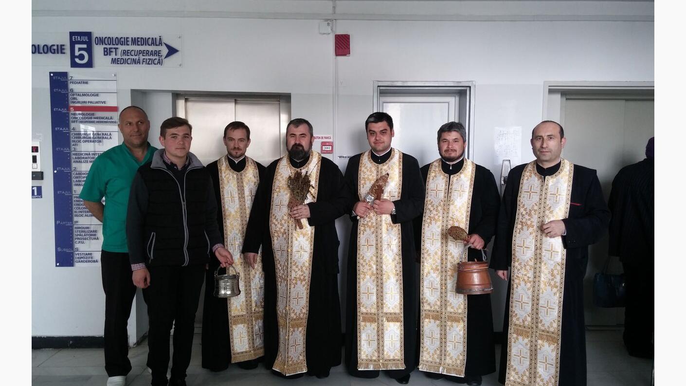 Așa cum este obiceiul liturgic, s-a oficiat slujba aghiasmei mici din Săptămâna Luminată. După săvârșirea celor rânduite pentru această zi, preoții care au slujit, luând aghiasma proaspăt pregătită, au mers prin fiecare salon al spitalului, binecuvântând personalul angajat și bolnavii din fiecare secție. Inimile preoților s-au umplut de bucuria celor care au primit binecuvântare prin stropirea cu apă sfințită.