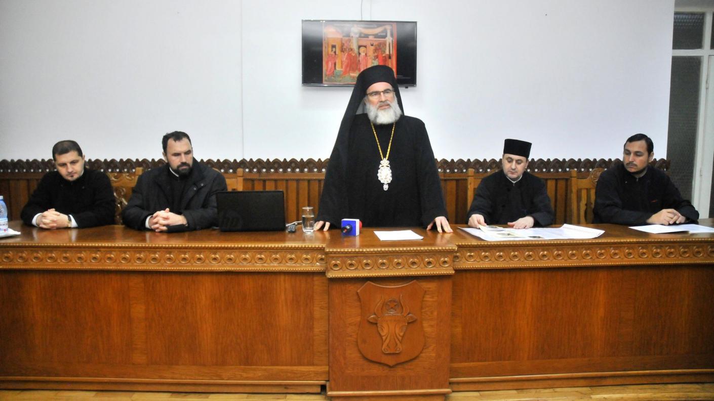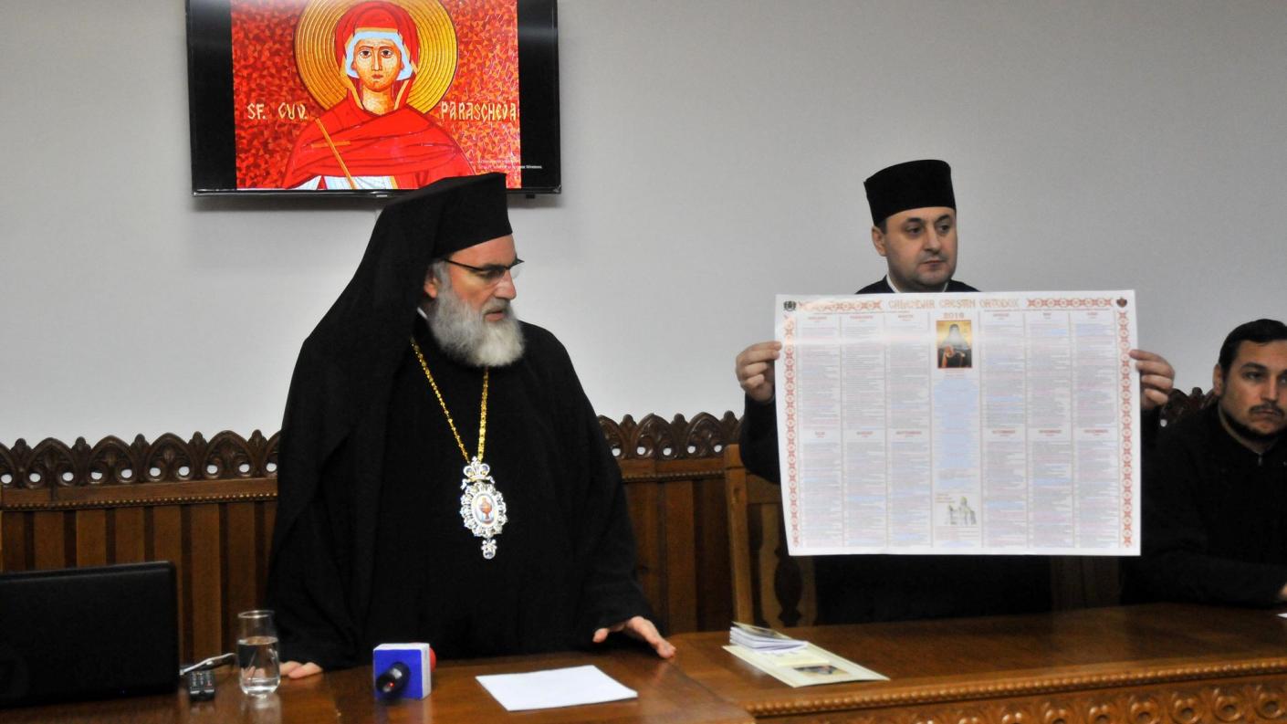 Apoi, la sediul Protopopiatului Bacău a avut loc prezentarea calendarului creștin – ortodox pentru anul 2016, Înaltpreasfinția Sa atrăgând atenția asupra semnelor distinctive care îl diferențiază de falsurile de pe piață. De asemenea, ierarhul a prezentat numeroasele particularități ale acestui calendar, de care credincioșii ortodocși trebuie să țină cont în viața lor duhovnicească. “Îi sfătuim pe credincioșii noștri să procure aceste trei tipuri de calendare realizate de Arhiepiscopia Romanului și Bacăului, mare, de perete și agendă, de la bisericile parohiale. Un calendar bisericesc se întocmește foarte greu, deoarece ciclurile liturgice oscilează de la an la an”, a declarat ÎPS Ioachim, care este și membru în comisia Sfântului Sinod de întocmire a calendarului. De asemenea, Înaltpreasfinția Sa a adresat un îndemn credincioșilor din eparhie prin intermediul mass-mediei: “Creștinii noștri nu trebuie să uite că o parte din fondurile strânse din vânzarea acestor calendare va fi distribuită către sectorul social-filantropic al Eparhiei, dat fiind faptul că acesta a cunoscut o dezvoltare deosebită în zona Bacăului, având numeroase servicii acreditate atât în această zonă, cât și în alte părți ale Arhiepiscopiei”. Detaliile privind programele și serviciile social-filantropice au fost prezentate apoi de preotul Eugen Ciuche, consilier în cadrul sectorului social-filantropic. La finalul întâlnirii, ÎPS Ioachim a răspuns la întrebările venite din partea jurnaliștilor prezenți la eveniment.