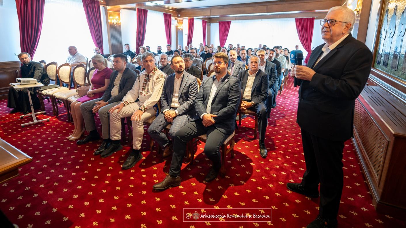 Părintele arhimandrit Pimen Costea a prezentat activitatea social-filantropică a arhiepiscopiei și a vorbit despre proiectul major socio-medical al eparhiei ce se construiește la Roman, și anume Spitalul Precista.