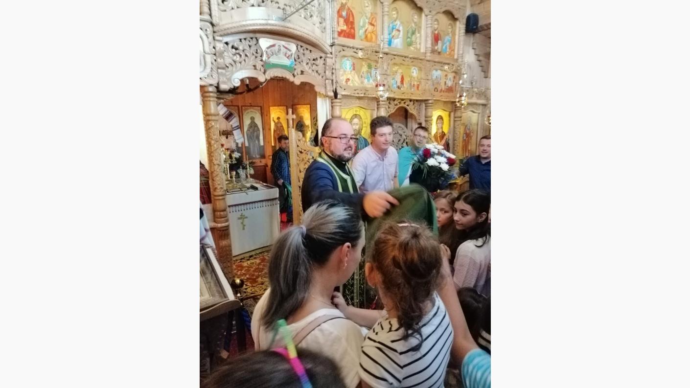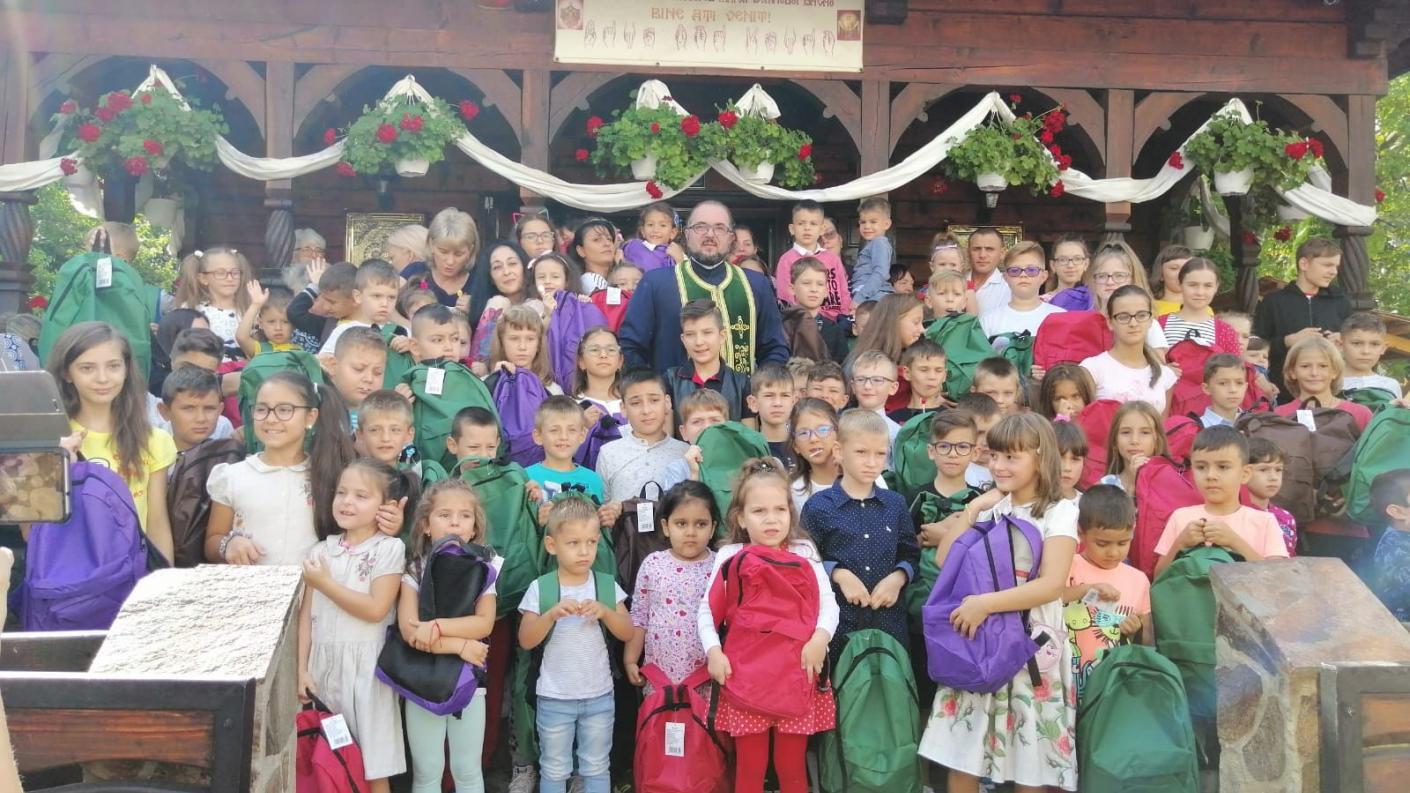 O sută douăzeci de copii au participat la Sfânta Litughie iar la final a fost oficiată rânduiala slujbei de la începerea anului şcolar elevii fiind apoi binecuvântați cu sfânta aghiasmă.