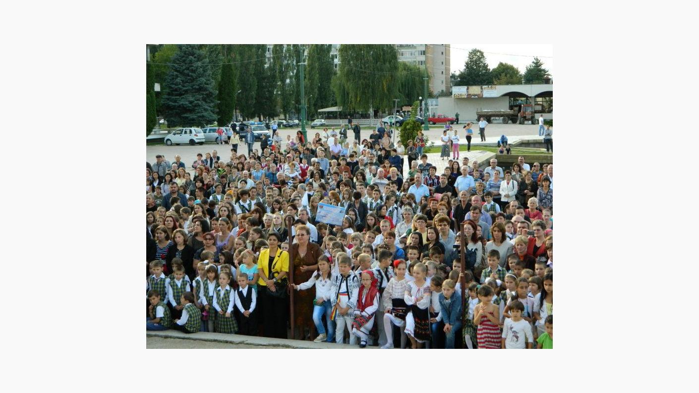 Câteva sute de elevi și profesori au participat luni, 16 septembrie, la slujba de binecuvântare a începului de an școlar oficiată de Preasfințitul Părinte Ioachim Băcăuanul, episcop-vicar al Arhiepiscopiei Romanului și Bacăului, la Catedrala ”Pogorârea Duhului Sfânt” din Onești.