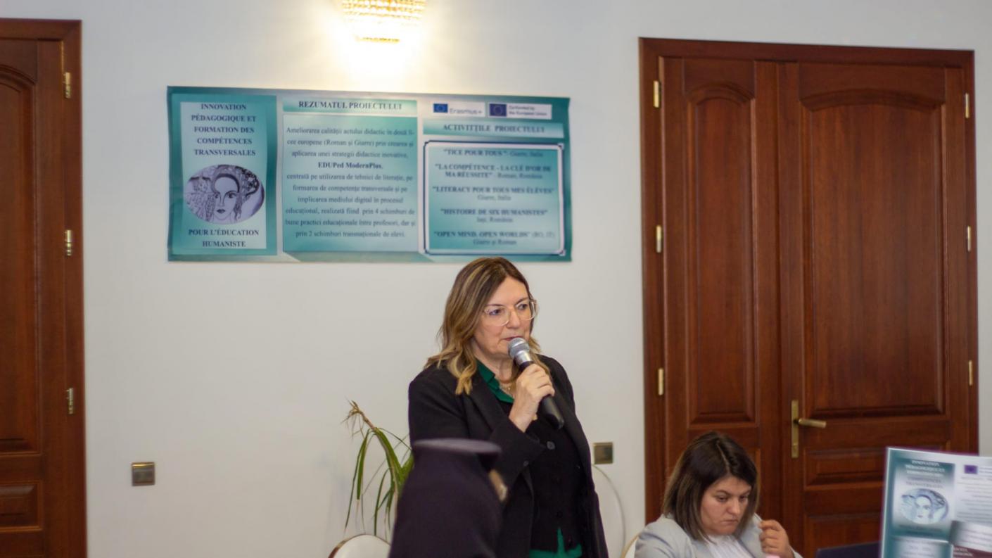 Invitată de seamă în cadrul lansării proiectului, doamna profesoară Leonarda Olivieri, din partea Instituto di istruzione superiore Leonardo, Giarre, Italia, a mulțumit organizatorilor și a adresat câteva cuvinte referitoare la importanța unui astfel de proiect. Din 2018, domnia sa a lucrat în cadrul a numeroase proiecte Erasmus+, majoritatea concentrându-se asupra problematicilor legate de bioetică, de învățare a limbilor străine sau asupra diverselor subiecte actuale. Colaborarea dintre cele două instituții școlare, cea românească și cea italiană, denotă importanța dezvoltării unei educații transversale și a unei dezvoltări durabile, care să vizeze atât elevii cât și profesorii.