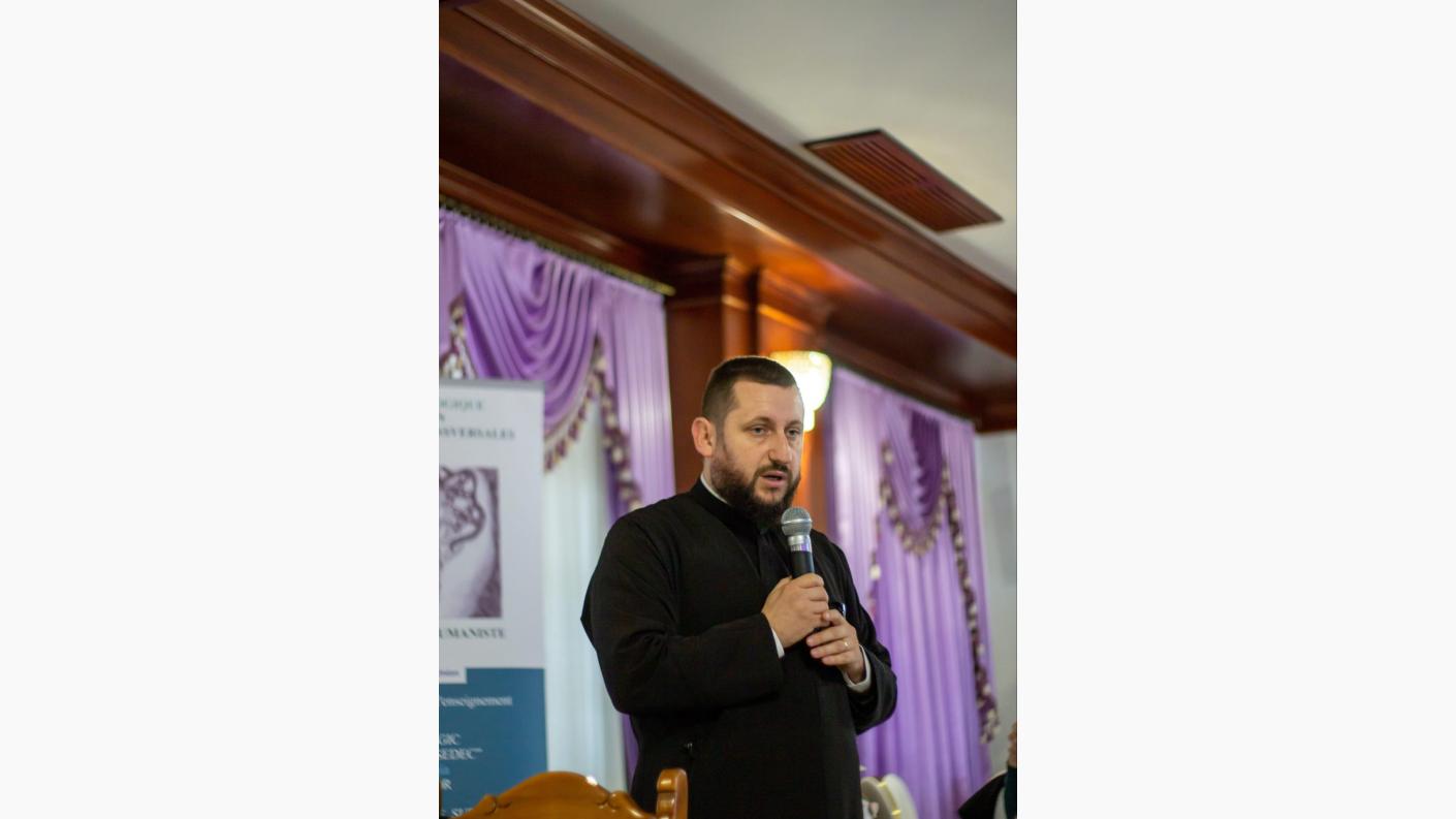 La eveniment a luat parte Înaltpreasfințitul Ioachim, Arhiepiscopul Romanului și Bacăului, care a subliniat necesitatea înțelegerii umanismului și a componentelor sale educative pornind de la învățătura lăsată de Mântuitorul Iisus Hristos: „Astăzi ne aflăm în fața unei provocări, pe care cu siguranță cei prezenți o vor transforma în șansă, și anume preocuparea umanistă, care nu poate exista fără aspectul ei spiritual. O povestire din Franța, din perioada industrializării, ne spune că un duhovnic povățuia anumiți tineri aplecați spre umanism să privească mereu către Dumnezeu, chiar dacă El este nevăzut. Deși nu puteau să-l vadă cu ochii pământești, ei erau îndrumați să privească spre Dumnezeu ca spre un prieten al lor. Dintre aceștia, un tânăr a urmat sfaturile duhovnicului, iar Dumnezeu i-a vorbit spunându-i că dragostea către celălalt este cea care ne mântuiește. Astfel, prin prezența noastră astăzi, asistăm la o binecuvântare a acestei întâlniri și este important să reținem că voi, tinerii, trebuie să mențineți această fereastră deschisă a inimii și să puneți un filtru, ca să nu intre nimic dăunător în ceea ce vreți să deveniți voi, anume niște oameni întru context mai mare și multicultural”.