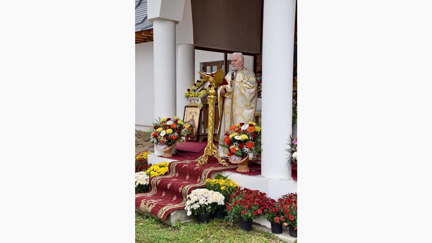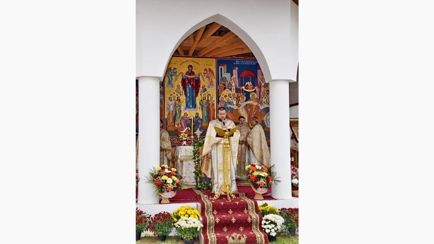 Sărbătoarea de astăzi nu își are originea în Sfânta Scriptură ,așa cum sunt serbate alte Praznice Împărătești în cinstea Macii Domnului, ci printr-o corespondență pe care în secolul V, împărăteasa Pulheria o adresează Patriarhului de atunci cerându-i acestuia să trimită la Constantinopol moaștele Sfintei Fecioare Maria, pentru faptul că împărăteasa ridicase în cartierul Vlaherne o biserică închinată Maicii Domnului. Patriarhul îi explică faptul că Maica Domnului fusese ridicată cu trupul la cer și că în mormânt nu s-a găsit decât brâul și acoperământul Maicii Domnului, iar aceasta îi cere să le trimită pe acelea pentru a deveni ocrotitoare ale Constantinopolului. Împăratul Alexie I Comneanul a plecat cu Sfântul Acoperământul la luptă și acesta s-a pierdut. Maica Domnului este rugătoare înaintea lui Dumnezeu pentru păcatele și pentru micimile noastre. Felicităm părinții acestei parohii pentru că au și acest hram al Altarului de vară cu binecuvântarea IPS Părinte Arhiepiscop Ioachim. Dacă Dumnezeu este cu noi, nu avem de ce să ne temem. Timpul de aici ne este dat pentru a ne îngriji de viața viitoare. Vă mulțumim pentru dragostea pe care o arătați pentru sfânta biserică.