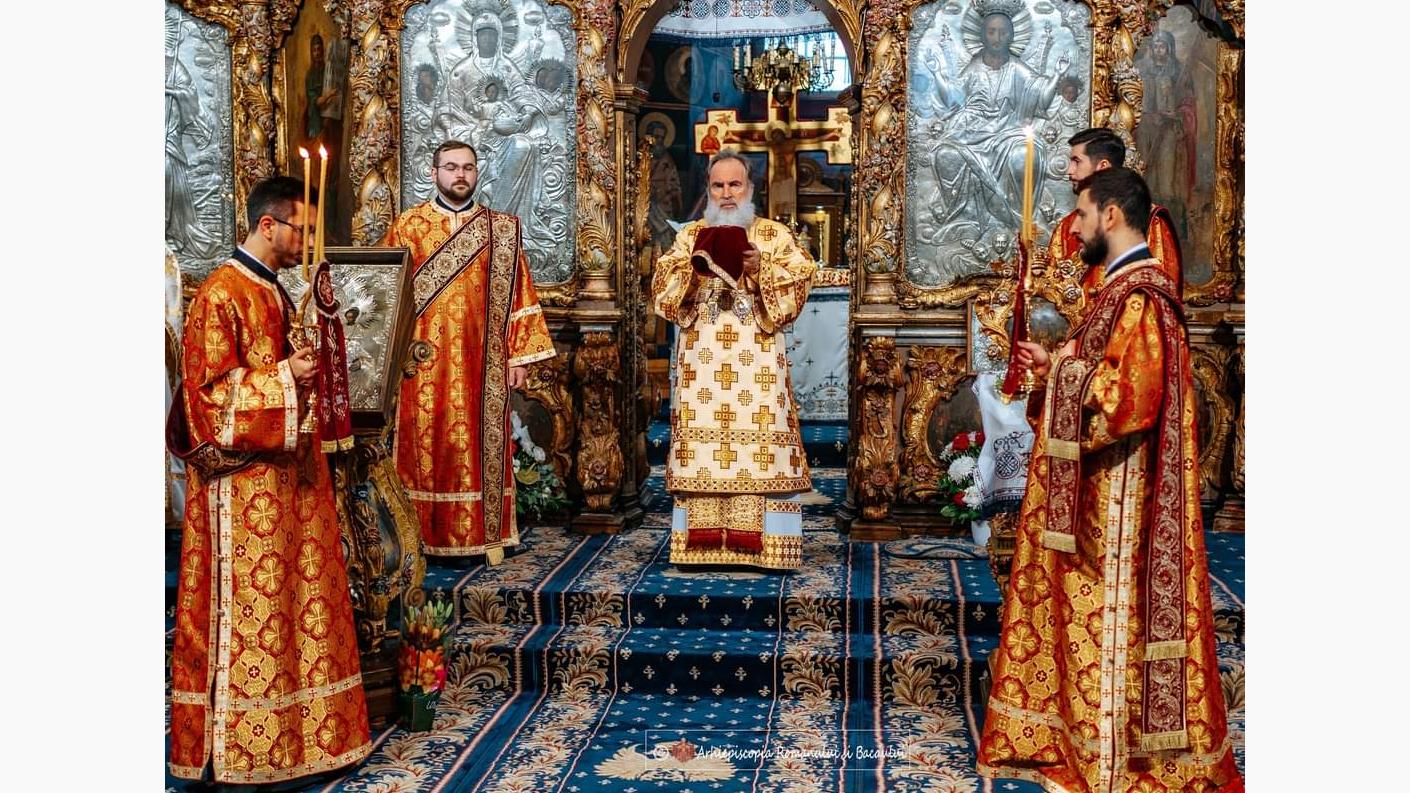 Sfânta și Dumnezeiasca Liturghie a fost săvârșită sub protia Înaltpreasfințitului Arhiepiscop Ioachim, alături de un sobor din care au făcut parte părintele arhimandrit Pimen Costea, vicar eparhial, precum și preoții și diaconii Catedralei Arhiepiscopale din Roman.