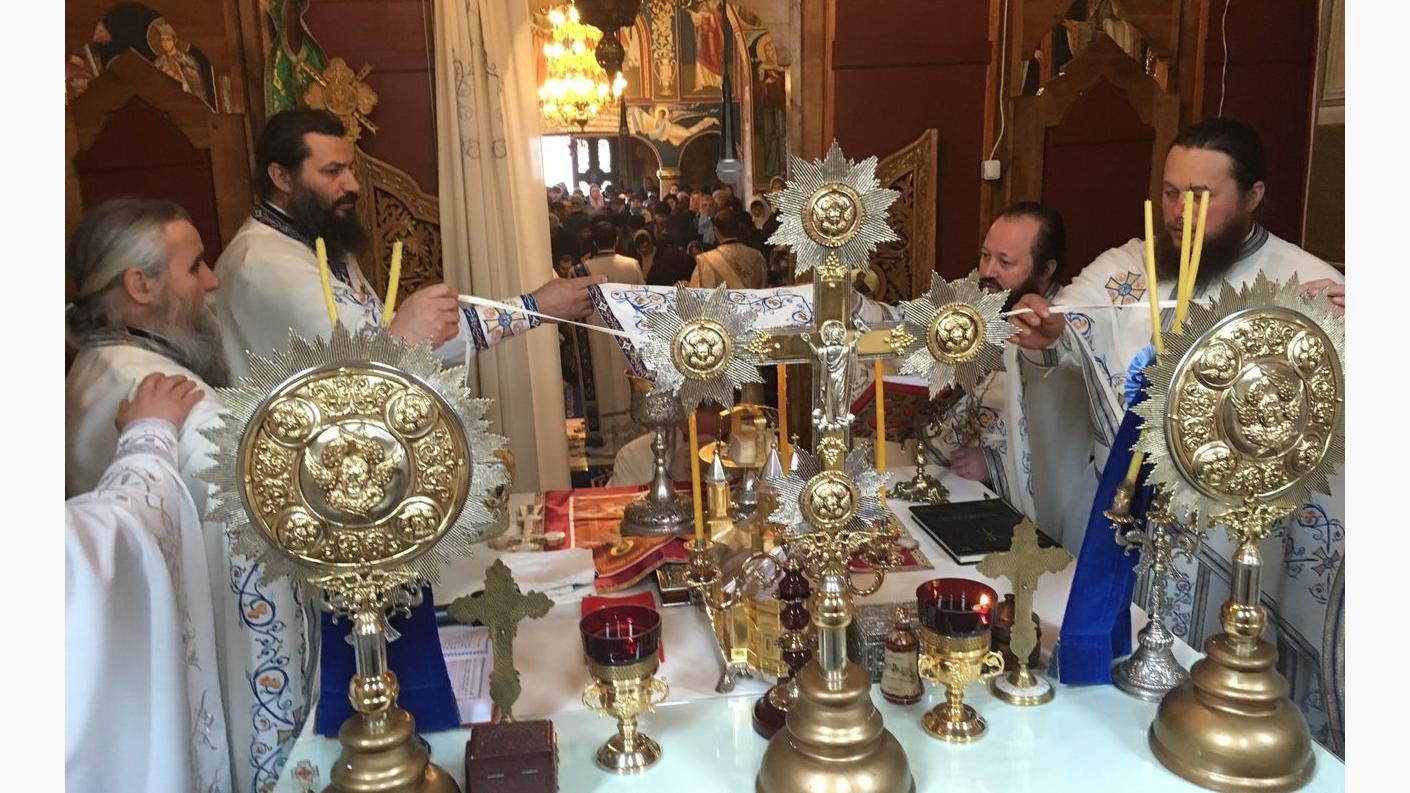 Emoția și bucuria sfântă din dimineața sărbătorii Bunei Vestiri era prezentă pe chipul fiecărui pelerin, care a dorit să participe la Sfânta Liturghie, alături de Chiriarhul locului și de maicile care se nevoiesc aici. Ierarhul a fost întâmpinat de către PC Părinte Arhimandrit Pimen, Vicar-administrativ al Centrului eparhial de la Roman și duhovnicul mănăstirii, alături de Maica Stareță, Stavrofora Teoctista Ungureanu, de părinți consilieri, de un sobor de preoți și diaconi, precum și de mulțime de popor adunat din toate comunele din jur. Imediat după citirea textului Sfintei Evanghelii, a fost rostit poemul Evanghelismos, compus de Arhiepiscopul Ioachim. Răspunsurile la strană au fost date de corul Mănăstirii, iar la final au fost cântate pricesne de către Pensionarii din cadrului Clubului 60+ al Primăriei municipiului Bacău.